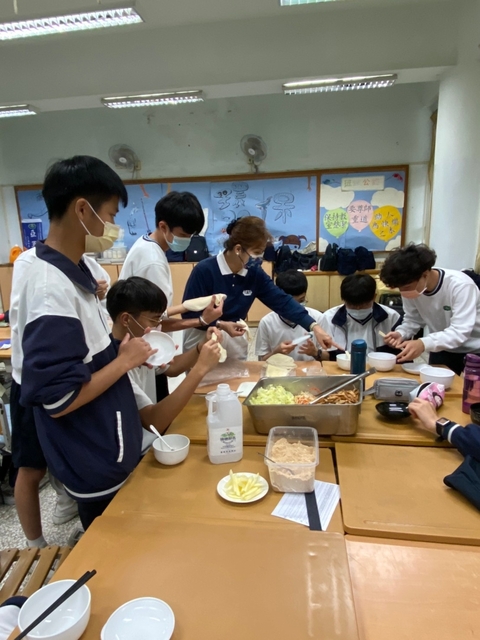 接著下午一點半到三點,則是班級教案課程分享與各家族家聚的時間,這次配合蔬食無痕及寒食節,我們準備了美味潤餅,讓孩子透過自己動手包潤餅,了解到寒食節的意涵並享用到自己製作的點心,接著四月份壽星慶生跟家聚時間是孩子們最開心的時段,吃著潤餅,彼此閒話家常時間很快就過去。