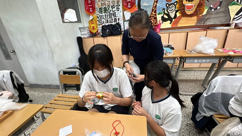 如今,我們將趨毒避凶的香包做成粽子的形狀,請孩子們親手縫製,為自己祈福,也體驗媽媽的心情,孩子們都做得認真而歡喜,還有許多同學互相幫忙,彼此成就,真是讓人很感動。