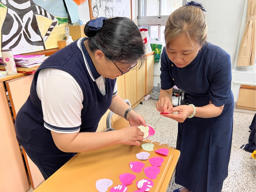 不少孩子都是生平第一次拿針線,不知該怎麼辦,懿德媽媽正好伸出媽媽的手來協助,和孩子共同完成,也讓彼此親近許多,有的孩子表示,這些事都是媽媽在做,所以他們不需要做,這次雖然手被針刺了幾下,反而更體會媽媽的不容易,也更加明白媽媽的愛。