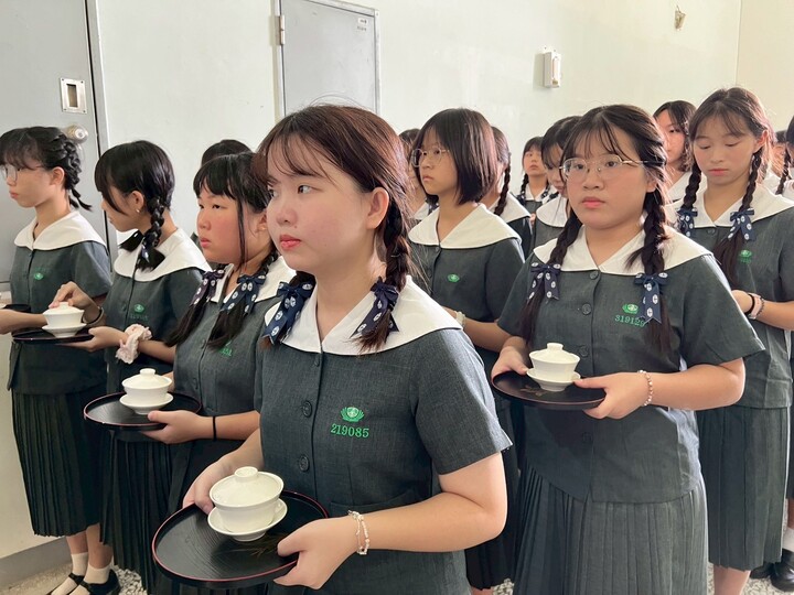 敬師儀式在孩子們整齊恭敬的奉茶中展開。