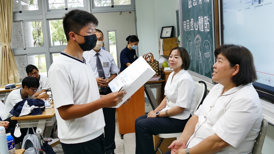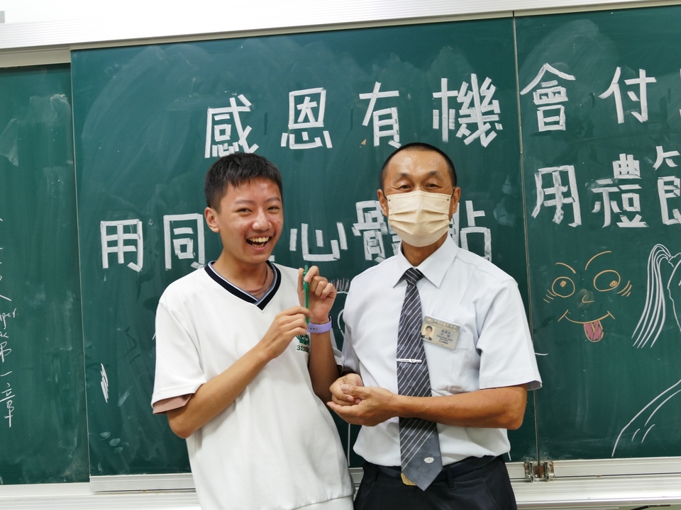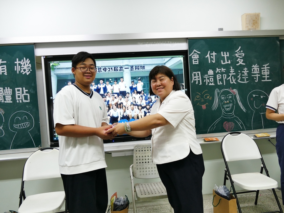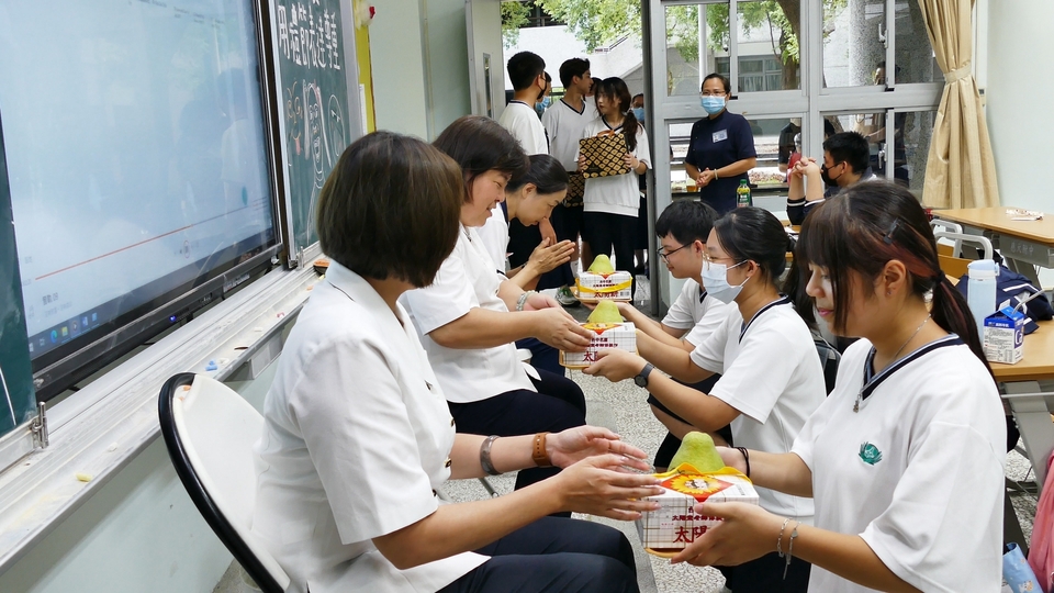 二、敬師奉茶:學生代表在感恩尊重愛的音樂中以恭敬心向導師及珮瑩老師和佳彥老師奉三好茶,及懿德爸爸媽媽由台中帶來的柚見好事(柚子)和太陽光大(太陽餅)敬祝老師們教師節快樂。