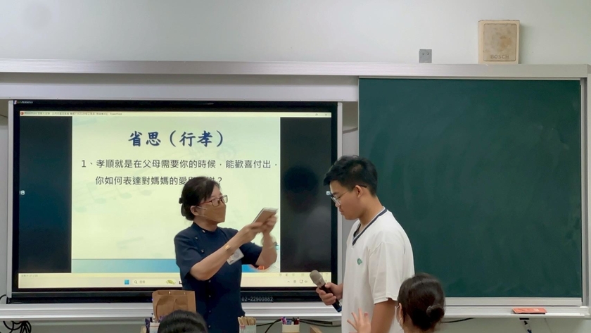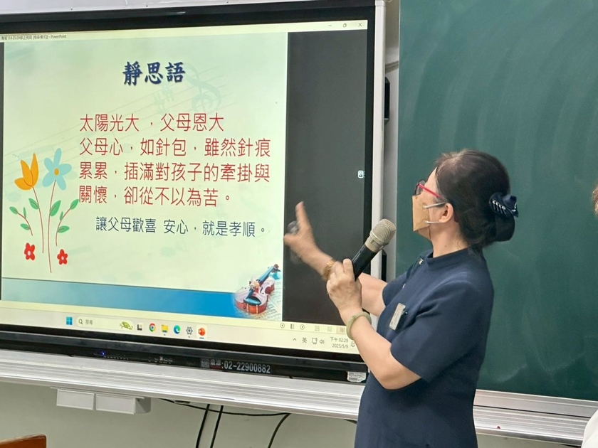 榮忠爸爸配合母親節設計,破冰班級相見歡,「我媽媽的金句」模仿大賽,讓同學們想想媽媽常說的口頭禪或有趣的話,活動中讓大家模仿媽媽的語氣和表情說出來,學生可以展現同學們的觀察力,也分享想對媽媽說的口頭禪想想媽媽常常叮嚀的一句話。