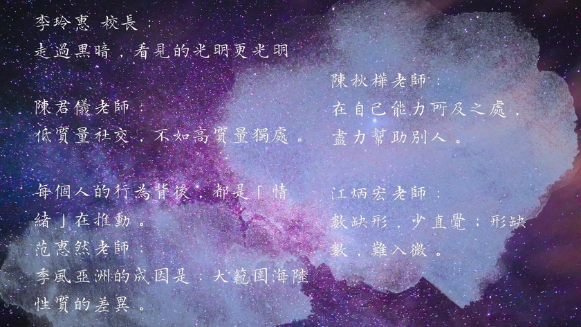 願大家「一秉初心、接續前行,呵護幼苗、灌溉菩提,傳遞人文、孕育清流,開枝散葉、造福社稷」!