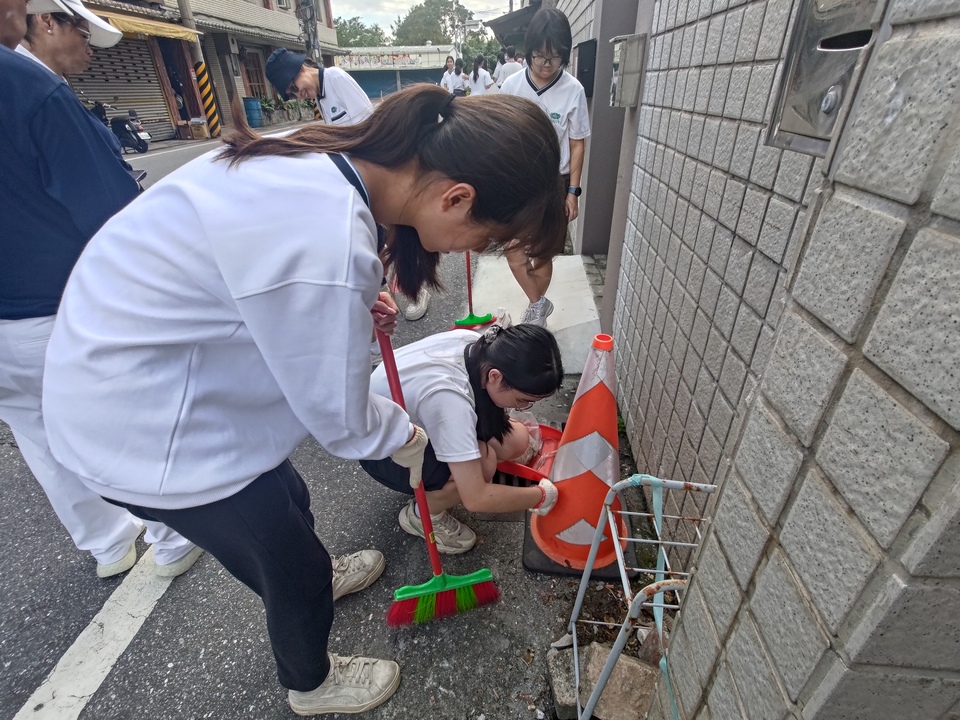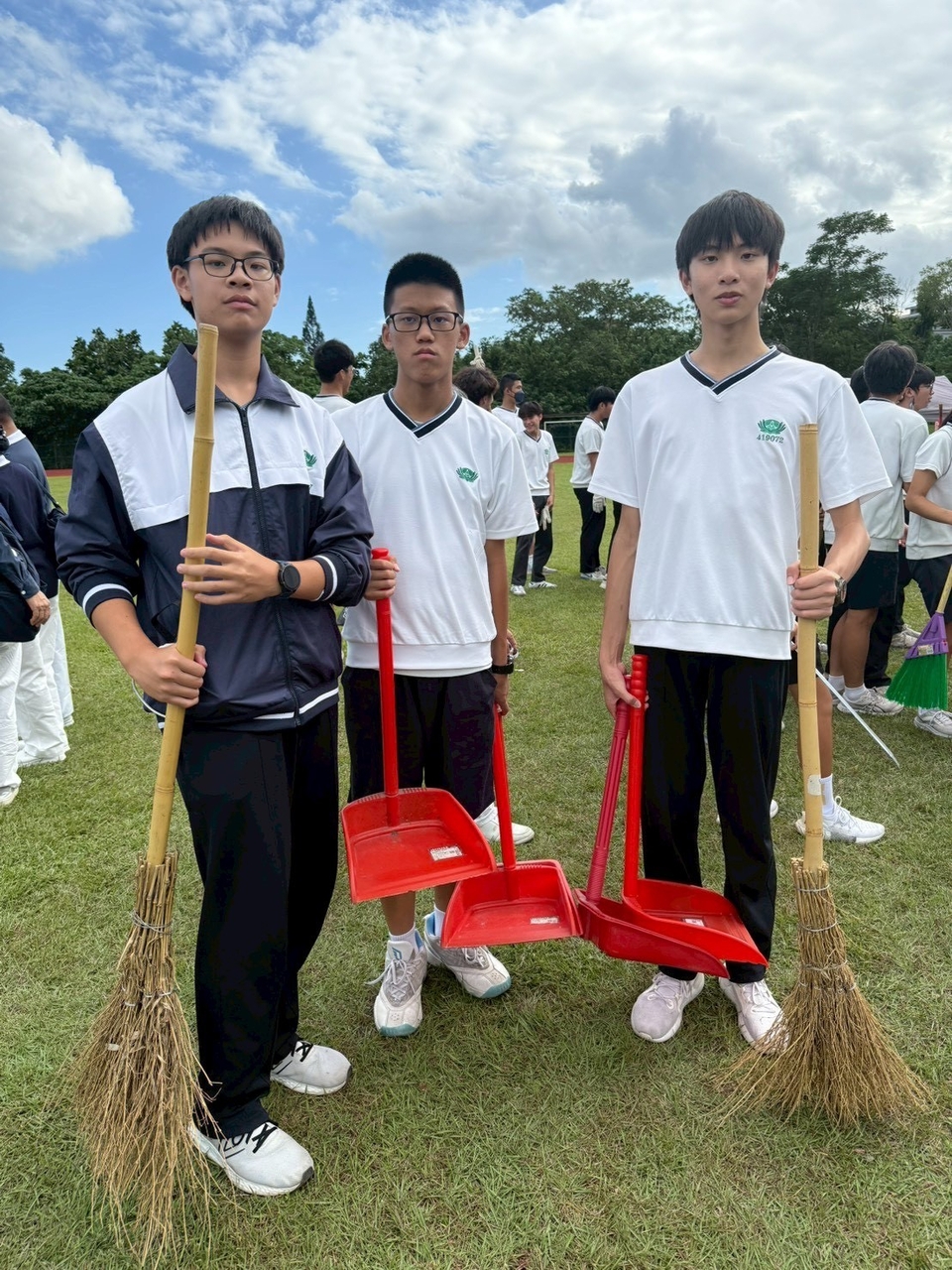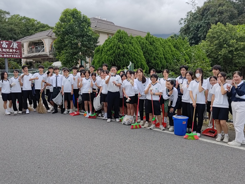 金枝媽媽準備加拿大巧克力,邱梅媽媽準備三明治,雖然午餐剛過,同學仍然忍不住食慾大開。過一會時間,來到下午2點“手護愛洄瀾”時間,由導師帶領學生及㦤德爸媽共同陪伴下走出校園,在1號門左向右邊開始打掃,直行越過幾個紅綠燈一直到養護中心,沿路是清掃的分配範圍。同學們帶著手套、掃把、畚箕、垃圾桶、垃圾袋、夾子、枯枝、樹葉、將垃圾裝進袋子裡,男同學提著大垃圾桶不嫌重。4點45分打掃結束,㦤德爸媽立即前往操場集合,為校慶運動會進場彩排以及大地和風操練習。