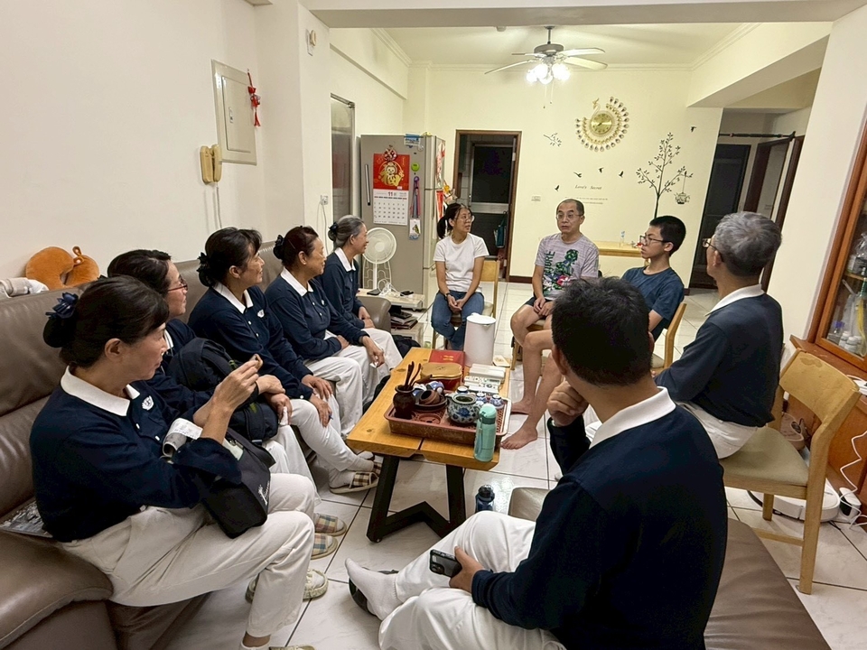 晚間8點一刻由家長榕修爸開車載著4位㦤德爸媽,以及另4位㦤德爸媽搭計程車共同前往王翊萱同學爸媽位於花蓮建國路2段,接近學校附近所開設的中醫診所。家長王惟德中醫師白天剛執行巡迴醫療結束,王醫師曾經在光復鄉服務多年,年輕時曾在臺北參與過慈濟人醫會。3位子女都就讀慈濟,大女兒已在輔仁大學就讀,二女兒王翊萱同學有著活潑聰明個性。家訪結束,2位㦤德爸媽走路回民宿,6位㦤德爸媽則由翊萱媽媽開車送回國際寮房,結束晚間家訪行程。