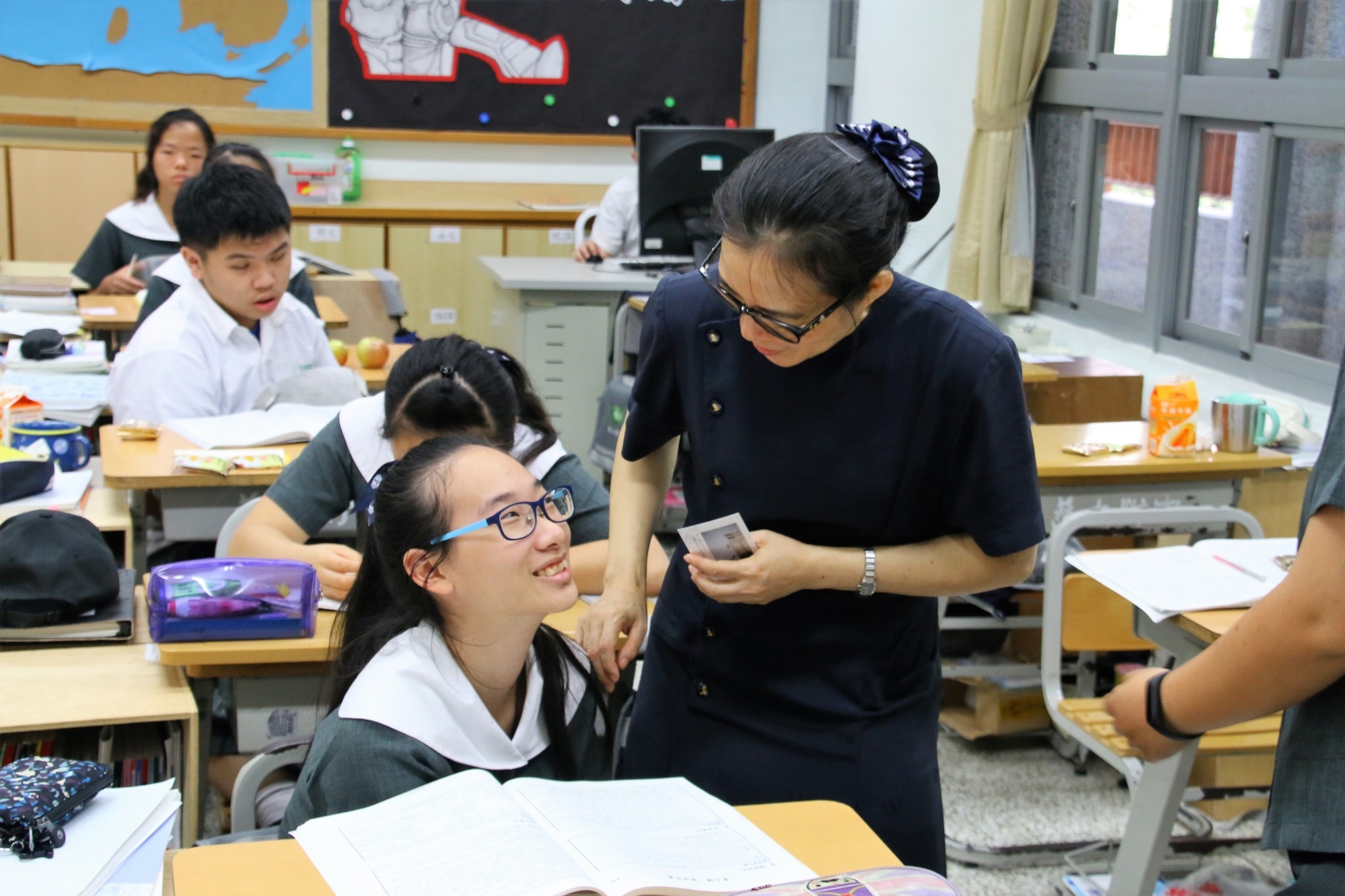 2018.06.08 高二包容在本學期的最後一次慈懿日中,懿德爸媽一一上台給予班上孩子,最真的祝福與勉勵,而孩子也不吝的紛紛向爸媽們,表達他們衷心的感恩,有形的是陪伴,而無形的效應是慈懿爸媽無私的愛,已然深植於孩的心中,用愛讓慈濟人文在孩子心中紮根。