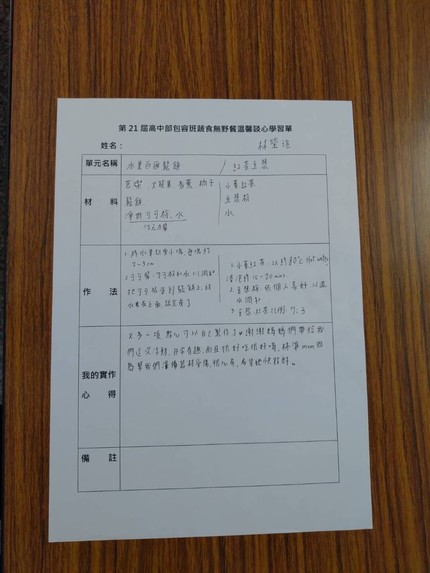 孩子們也分分在學習單中分享自己的手做心得,希望能學習更多的蔬食點心。