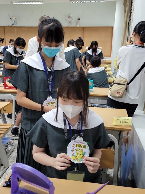 親子相見歡時間,孩子們戴上爸媽們精心設計的名牌卡,象徵2022虎年至慈中念書,是非常有福氣的,圖案俏皮醒目,非常亮麗吸睛。