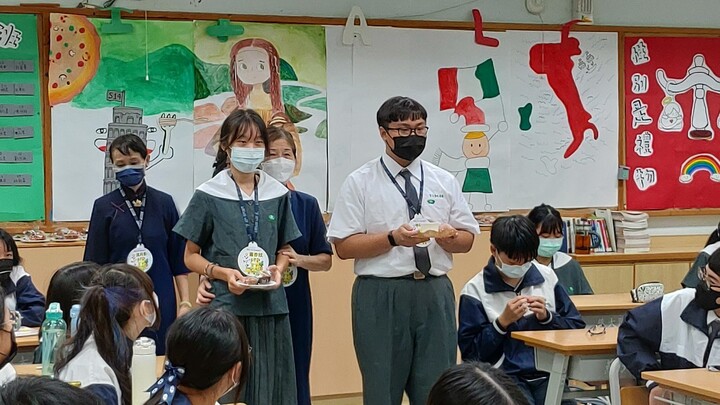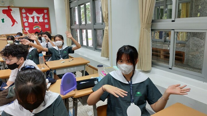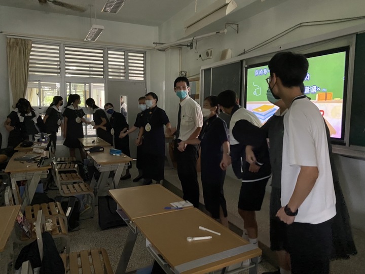 (3) 再來是敬師謝師活動的彩排,先請同學們將中間課桌椅往兩側移動,空出中間走道,讓奉茶同學端茶進場。同學們迅速配合騰出空間。