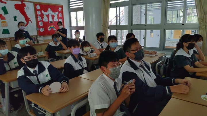 (6) 老師坐定後,先播放7月底「新生始業式」的回顧影片5分鐘,同學們看到大螢幕上的帥哥、美女,莫不驚呼連連,陶醉在影片中。