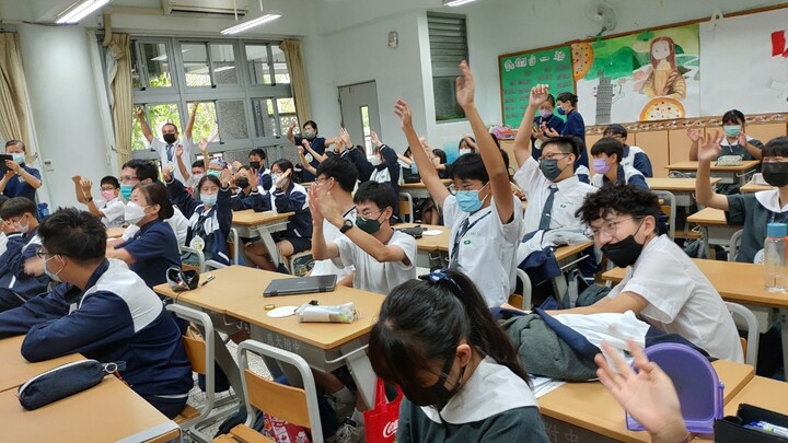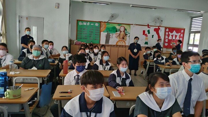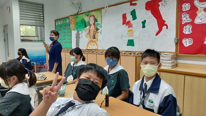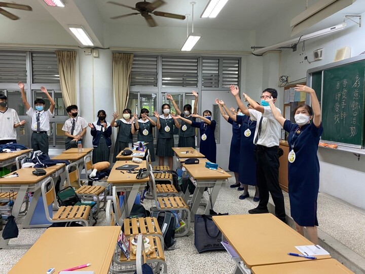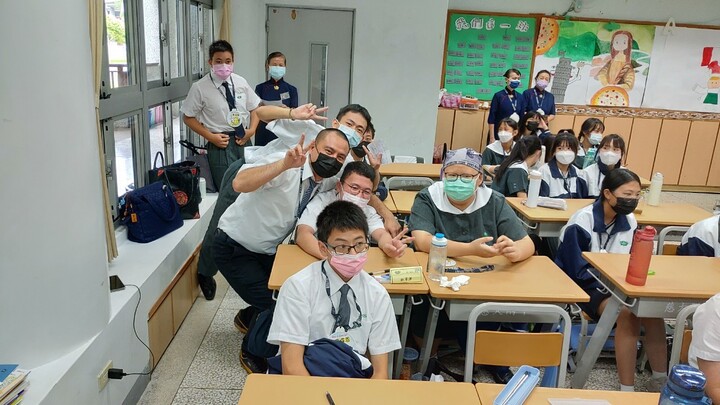 (12) 合唱完,大家至教室外合影留念,為今天之活動畫下圓滿句點。期待疫情盡快消散,讓孩子們不用時時戴口罩,回歸正常生活。感恩~