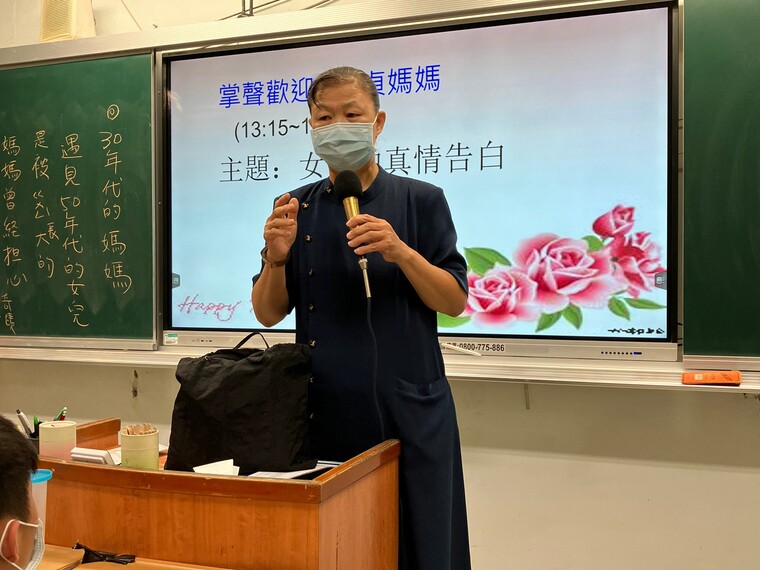 4. 接下來「心內話」單元,由淑惠媽主持,淑惠媽邀請幾位同學上台分享媽媽平常是怎麼照顧我們的,有甚麼感動事蹟。