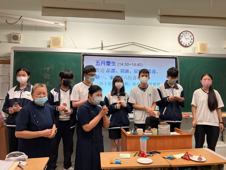 7. 接下來慶生,由惠芬媽及金枝媽主持,五月壽星有六位,致贈「包容石」及繡有姓名的「感恩手帕」給同學們當生日禮,這些禮物是純手工製作,非常有意義。