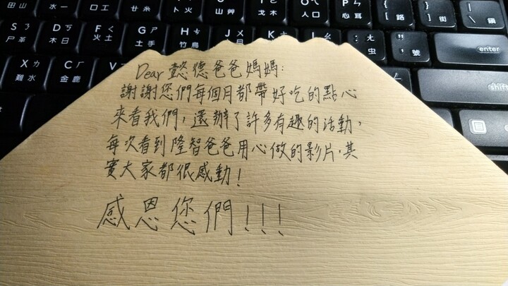 2. 今天活動輪到第三家族負責,由敏麗媽主持,請淑美媽分享「愛的力量」,還有淑惠媽教作九月謝師書籤(真是超前部署),最後播放五月回顧&用點心。室內活動結束後各家族帶到戶外分組拍照,同學們很開心,幾位同學到戶外好像脫韁野馬,跑來跑去不受控,也展現陽光男孩的一面。