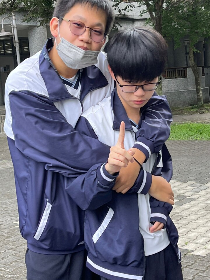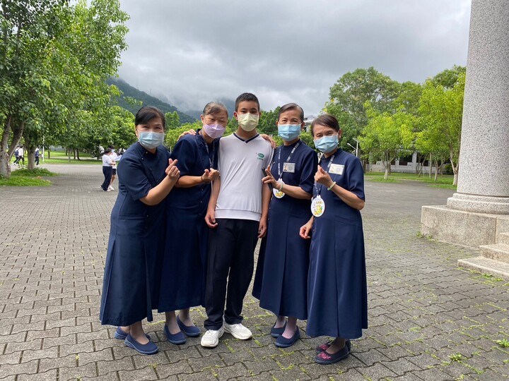5. 最後是家族時間,大家到外面拍照留念,有些孩子被蚊子叮咬紅腫,看了很心疼。有些孩子跑來跑去很興奮,與好同學抱在一起,展現同學之間的好交情。