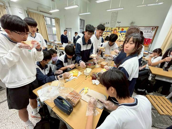 這次我們準備了製作三明治的許多食材,要孩子們動手DIY,三明治的材料:吐司、沙拉、起司片、素香鬆、草莓果醬、蔓越莓乾、小黃瓜、蘋果等,配料豐富又兼顧營養,孩子們都很開心的做出自己最美味的三明治,但嘉琦媽媽不忘教導孩子恭敬心,所做三明治要先請爸爸、媽媽先享用、他們才可享用,孩子們也都歡欣地做給我們吃,這是多好的身教與機會教育。