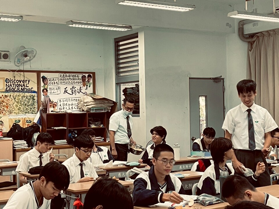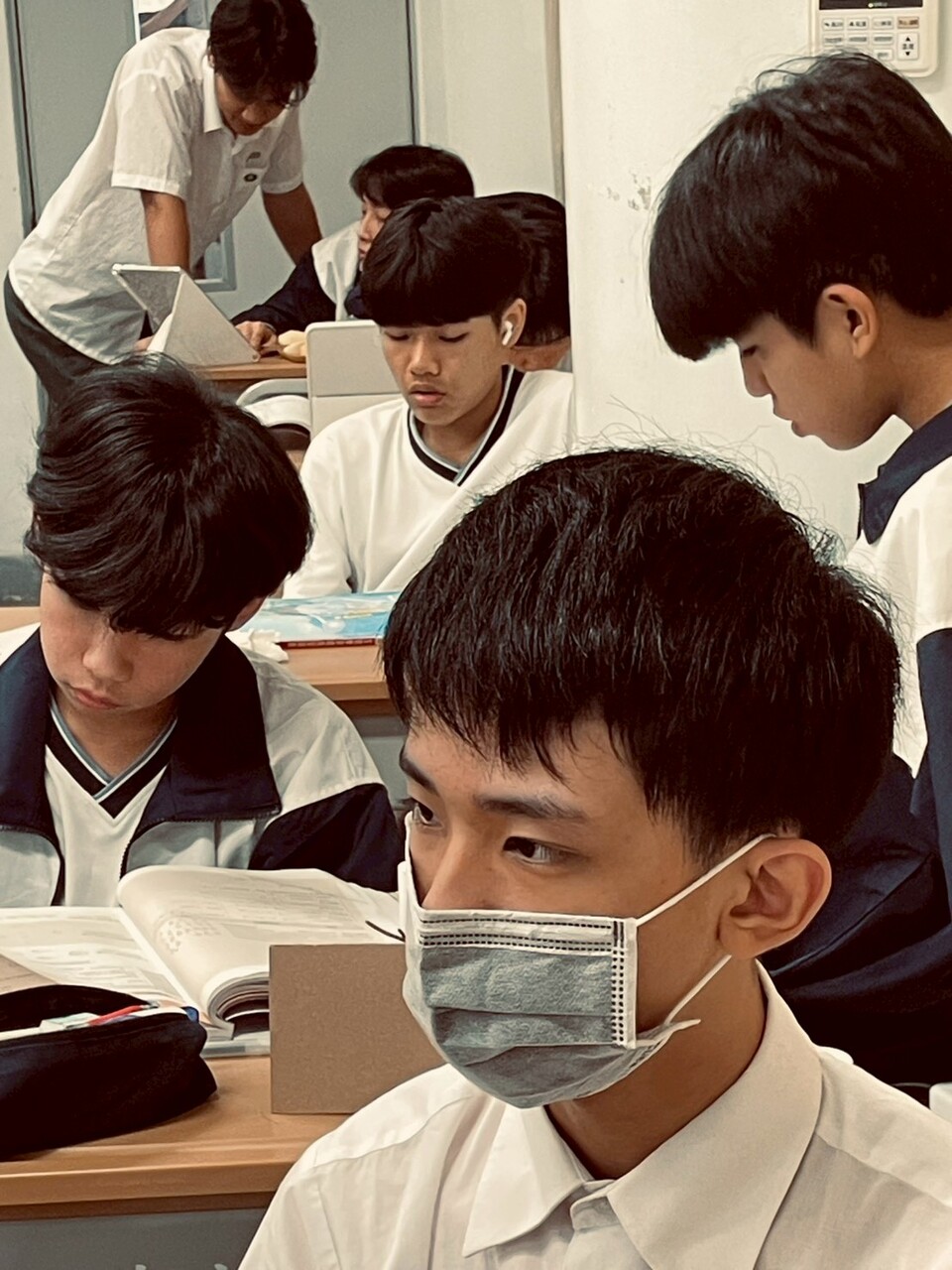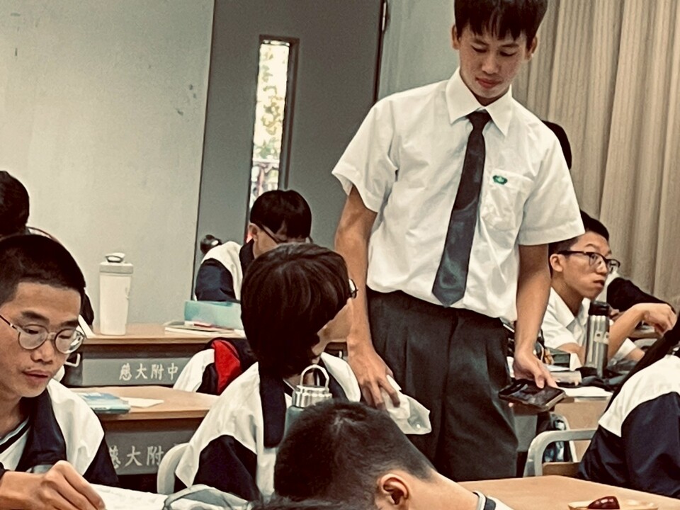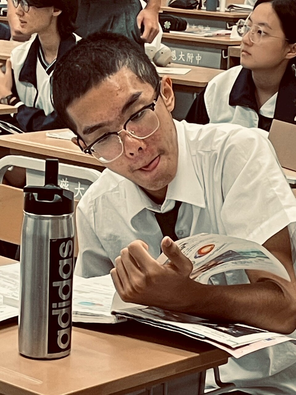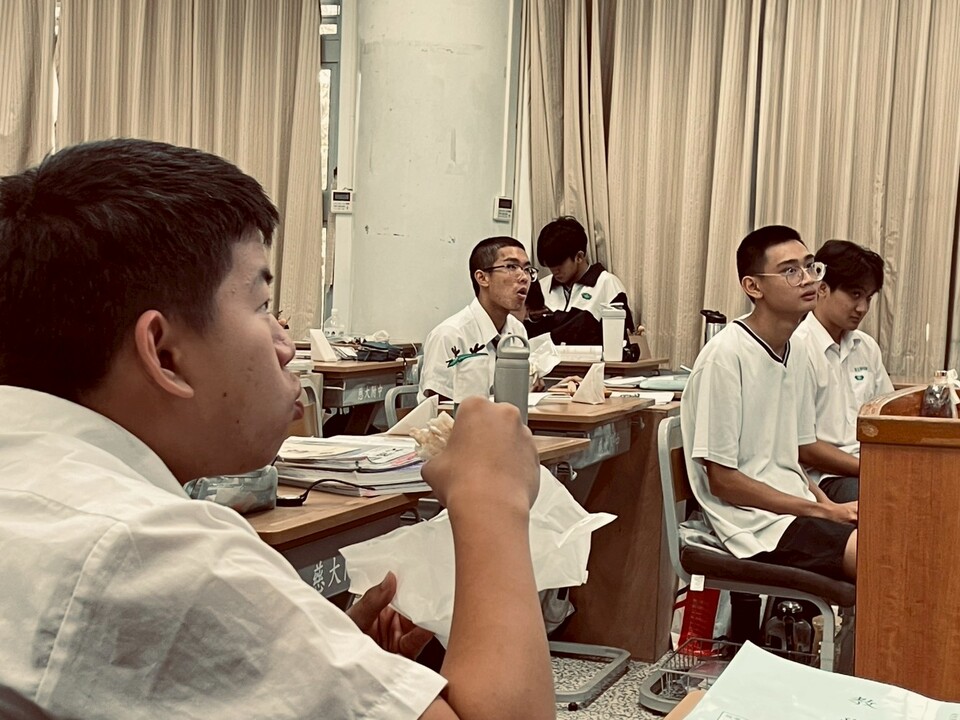 我們又教了他們在課堂需要踴躍發問,而且能夠預習跟複習,便可讓自己的實力即時地增長進步;除了自己要不斷地做一些練習跟突破實力的極限,並且要跟同學互相的幫忙,也能在段考前的準備研讀與相互討論ㄧ起精進。