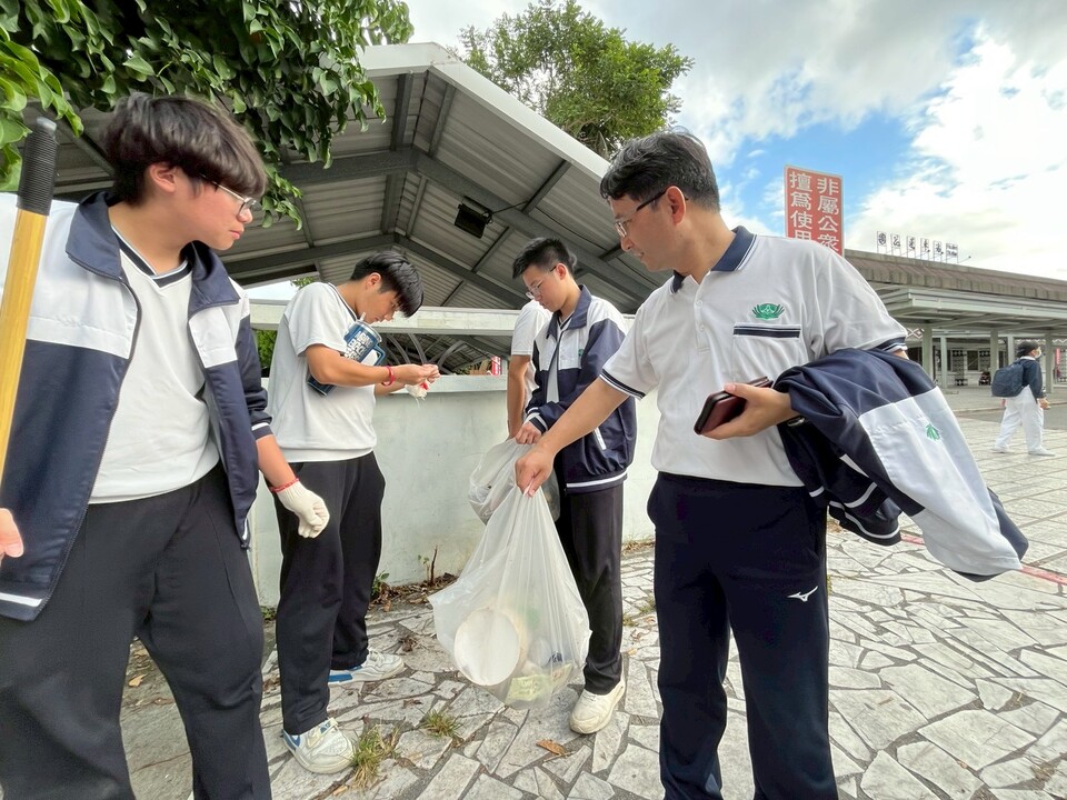 我們班分配至花蓮火車站,打掃周邊環境,在花蓮火車站站務主任祝福後展開任務。短短一個多小時,垃圾袋裝得滿滿的,成果相當豐碩,也見證孩子們的努力,突然覺得火車站乾淨了許多。活動結束,孩子們心中帶著歡喜心搭上遊覽車返回校園。