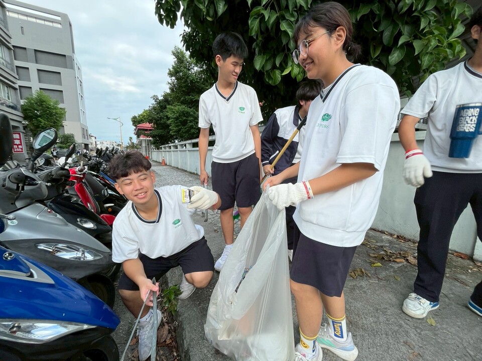 在校慶展開的前一天,慈中以行動為這片土地,獻上深深的祝福,也以環保愛地球 方式為學校慶生。全校師生齊心出發,分批走入花蓮的街頭、海邊、市場、醫院、 車站及精舍,滿懷對生活環境的感恩與回饋,實踐「做中學、學中覺」的環保教育。