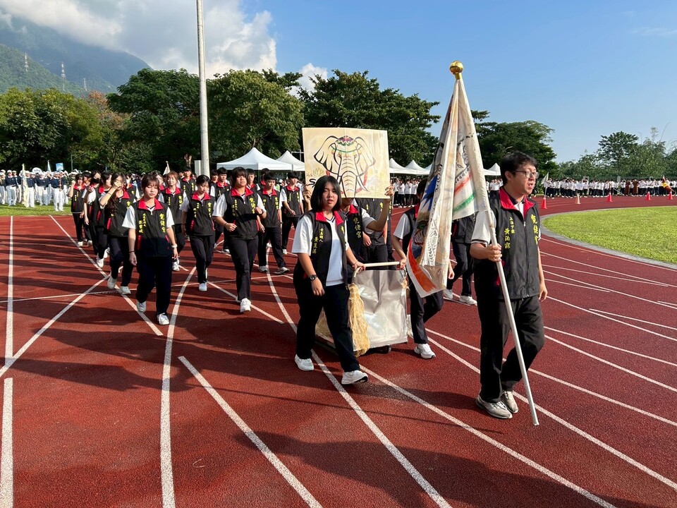全校師生至操場集合,學務主任的行前叮嚀及校長的期勉與祝福。