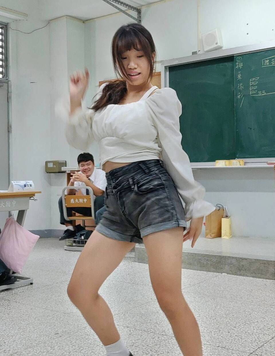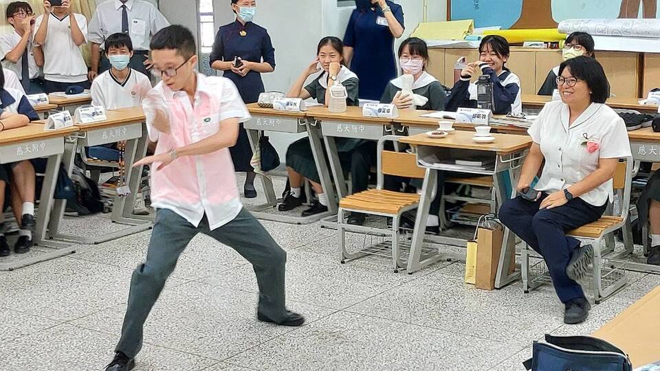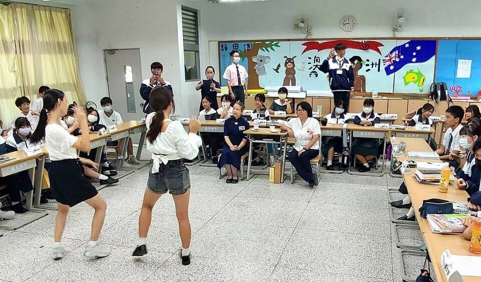 由班長羿庭和守慧同學熱舞表演,淳恩同學彈吉他和幾位女同學一起合唱,男同學也踴躍上台表演歌唱和武術表演,共同祝福老師教師佳節愉快.