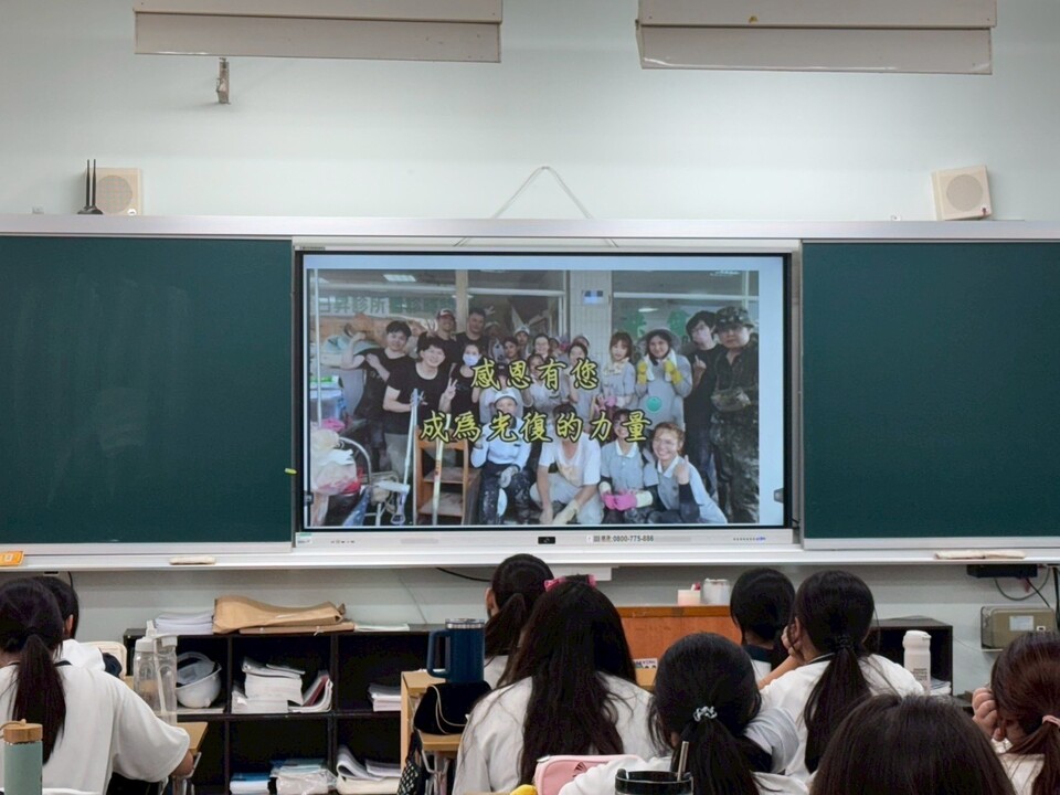 這次課程就用925光復愛的力量進入災區,班上有很多同學都有投入這次的救災,一開始請他們分享的時候他們並沒有很大的意願,透過媽媽的引導孩子們也願意分享當下他們的感動,雅涵同學分享當地居民雖然在這樣的狀況還是如此樂觀態度,羅零同學分享一開始是家長鼓勵他去,但他卻在做中學到每鏟下去都是辛苦的,如果沒有結合大家的力量,那就是一個不可能完成的任務,還有很多同學也陸續分享,相信他們從這次做中學中領悟到的感動絕對是他們一輩子的記憶。