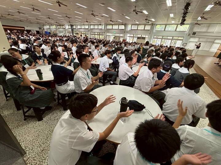 每班都有自己的通關密語,爸爸媽媽透過身體語言將通關密語演出來,讓孩子們猜猜哪隊是自己班的家長。還好我們抽到的通關密語是:這樣讀就對了。 簡單易懂,孩子們第一時間就找到我們了!
