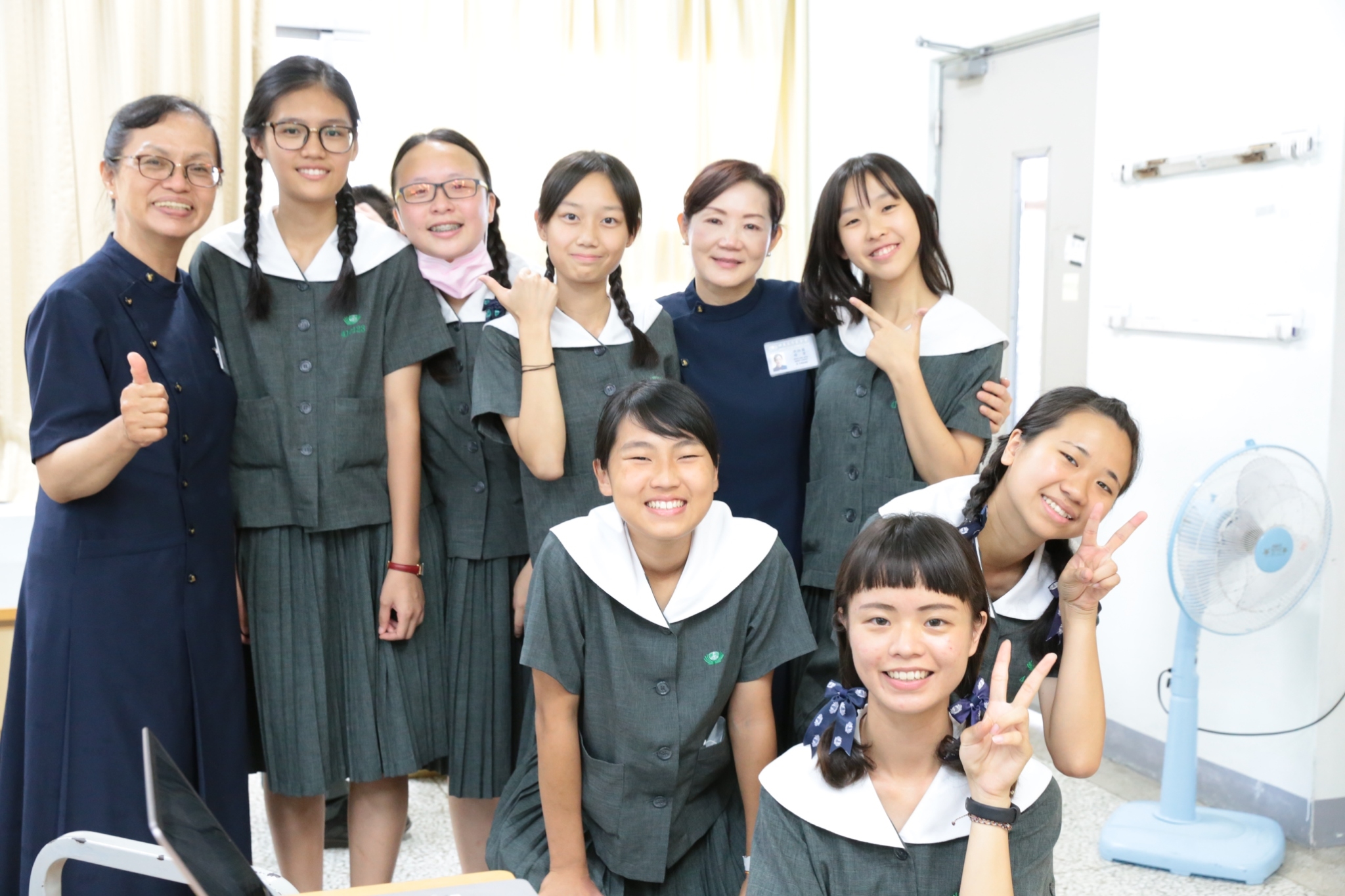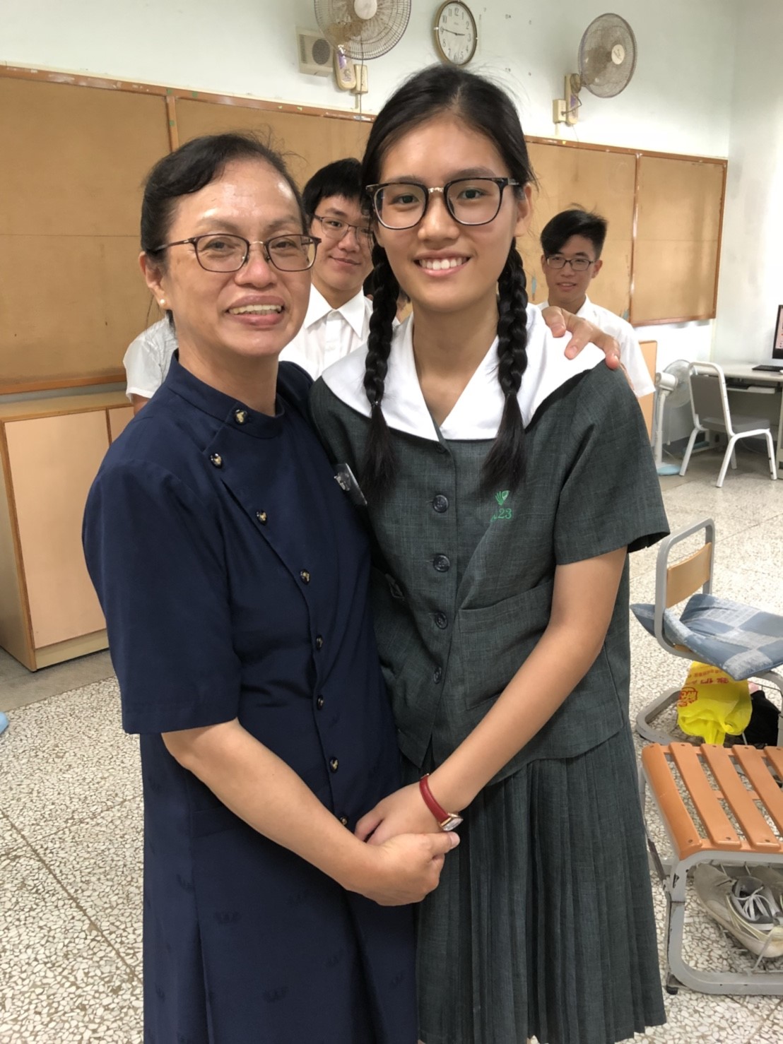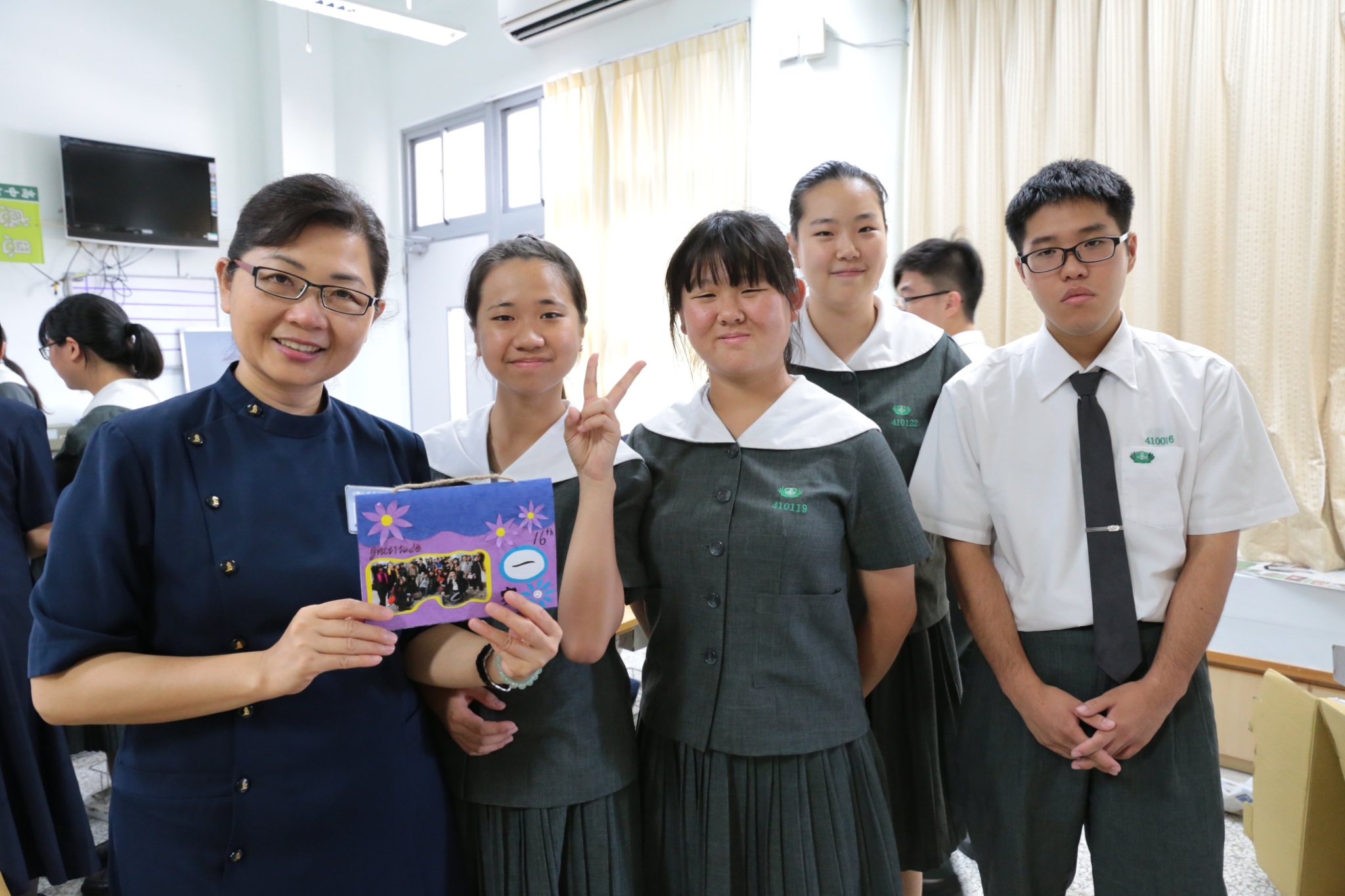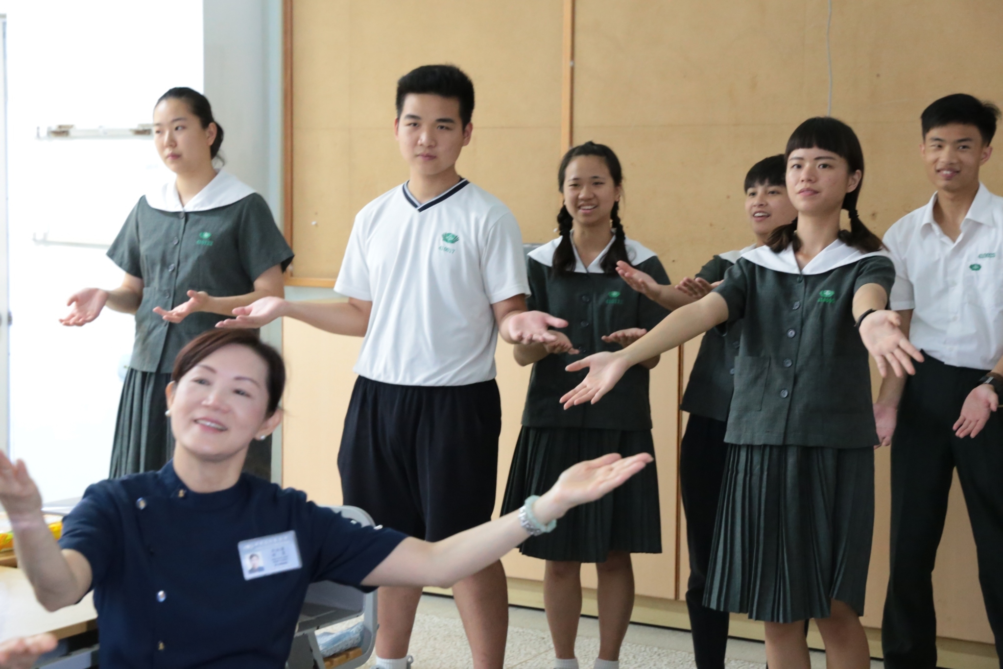 當門打開,孩子們打著節拍、唱著歡迎的歌迎接著我們,不禁紅了眼眶,流下了感動的淚珠。還記得高一相見歡時,生澀的、純真的你們,還帶著羞怯、清純的神情言語;如今,各個充滿自信與智慧,成熟的言行,讓我們感到欣慰。