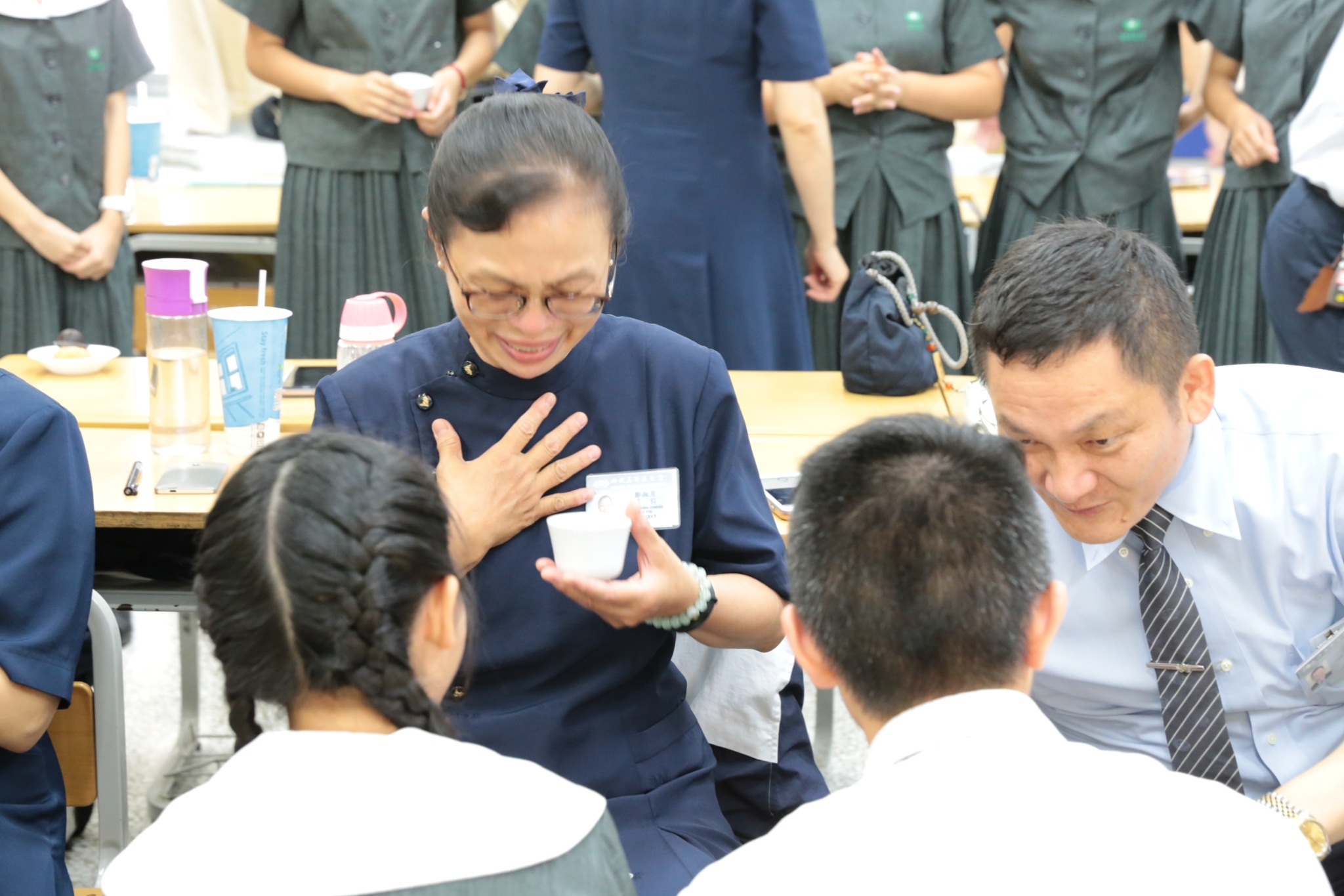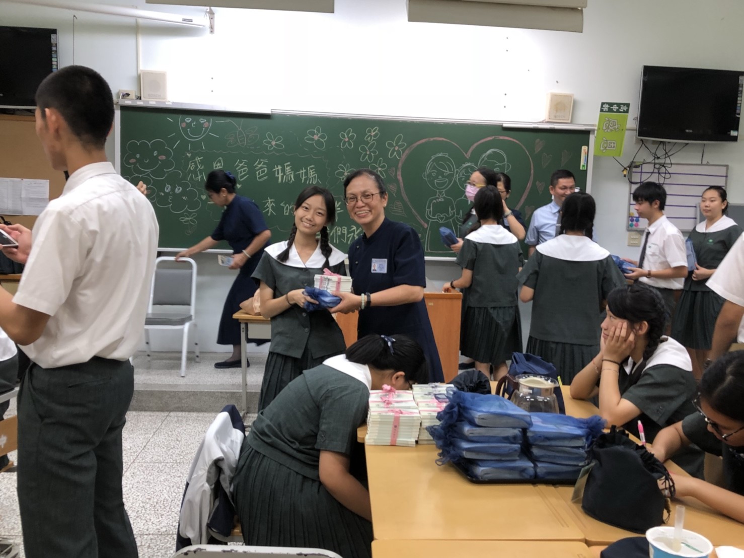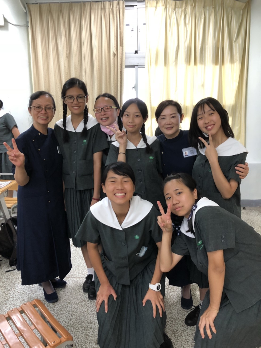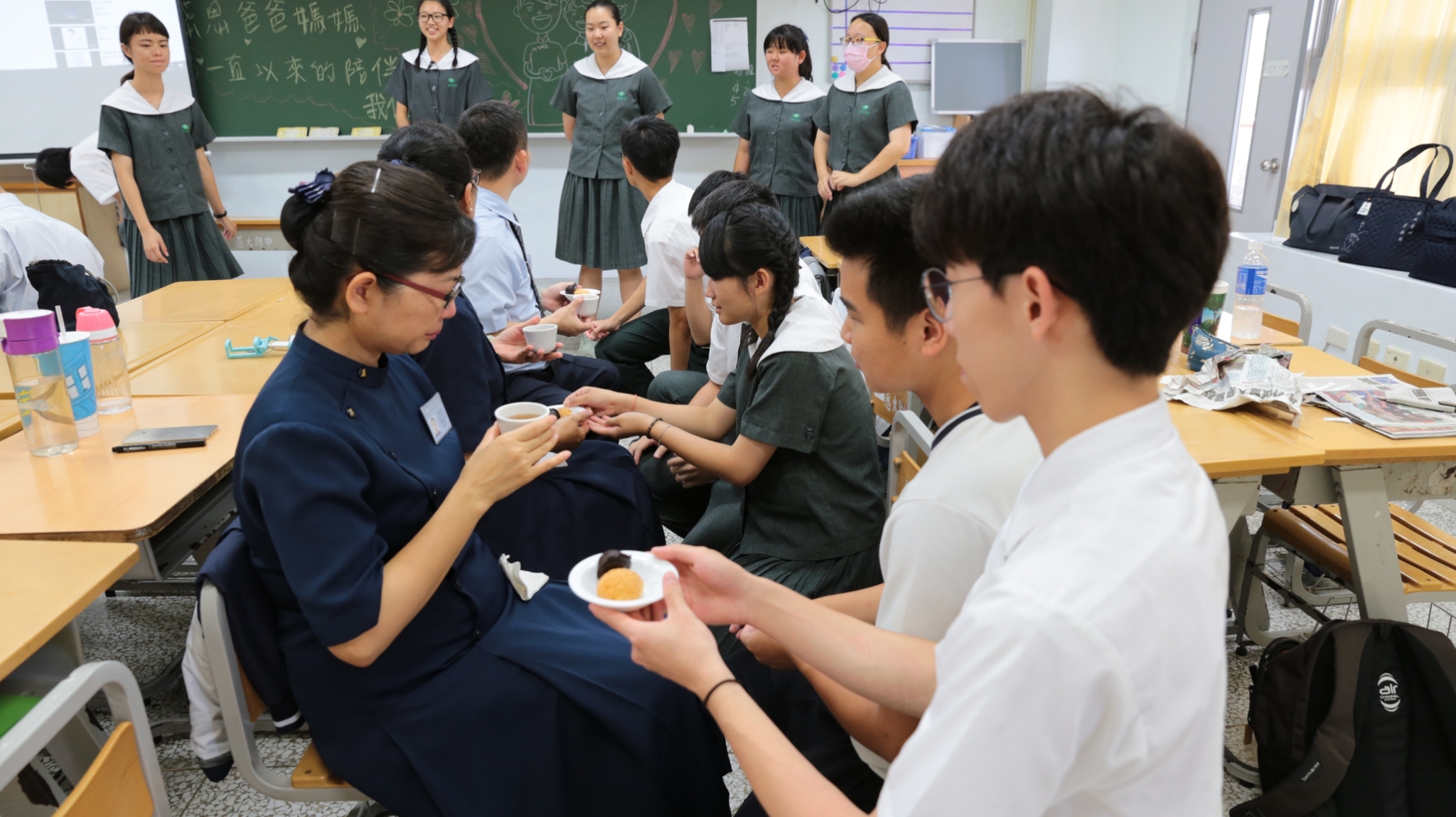 當門打開,孩子們打著節拍、唱著歡迎的歌迎接著我們,不禁紅了眼眶,流下了感動的淚珠。還記得高一相見歡時,生澀的、純真的你們,還帶著羞怯、清純的神情言語;如今,各個充滿自信與智慧,成熟的言行,讓我們感到欣慰。
