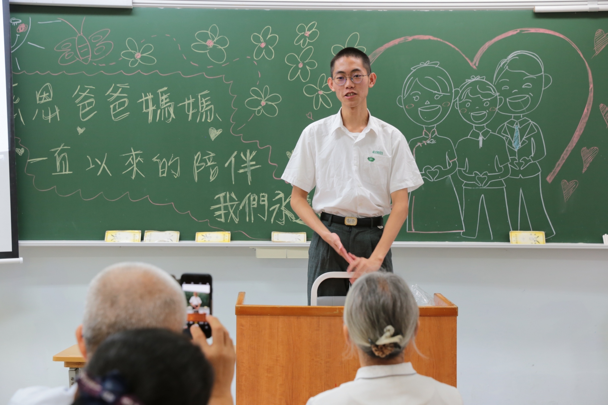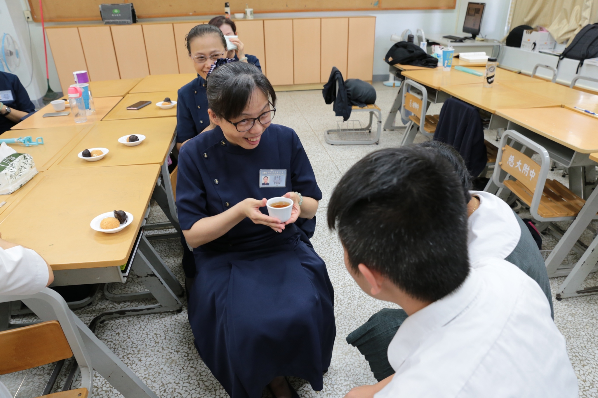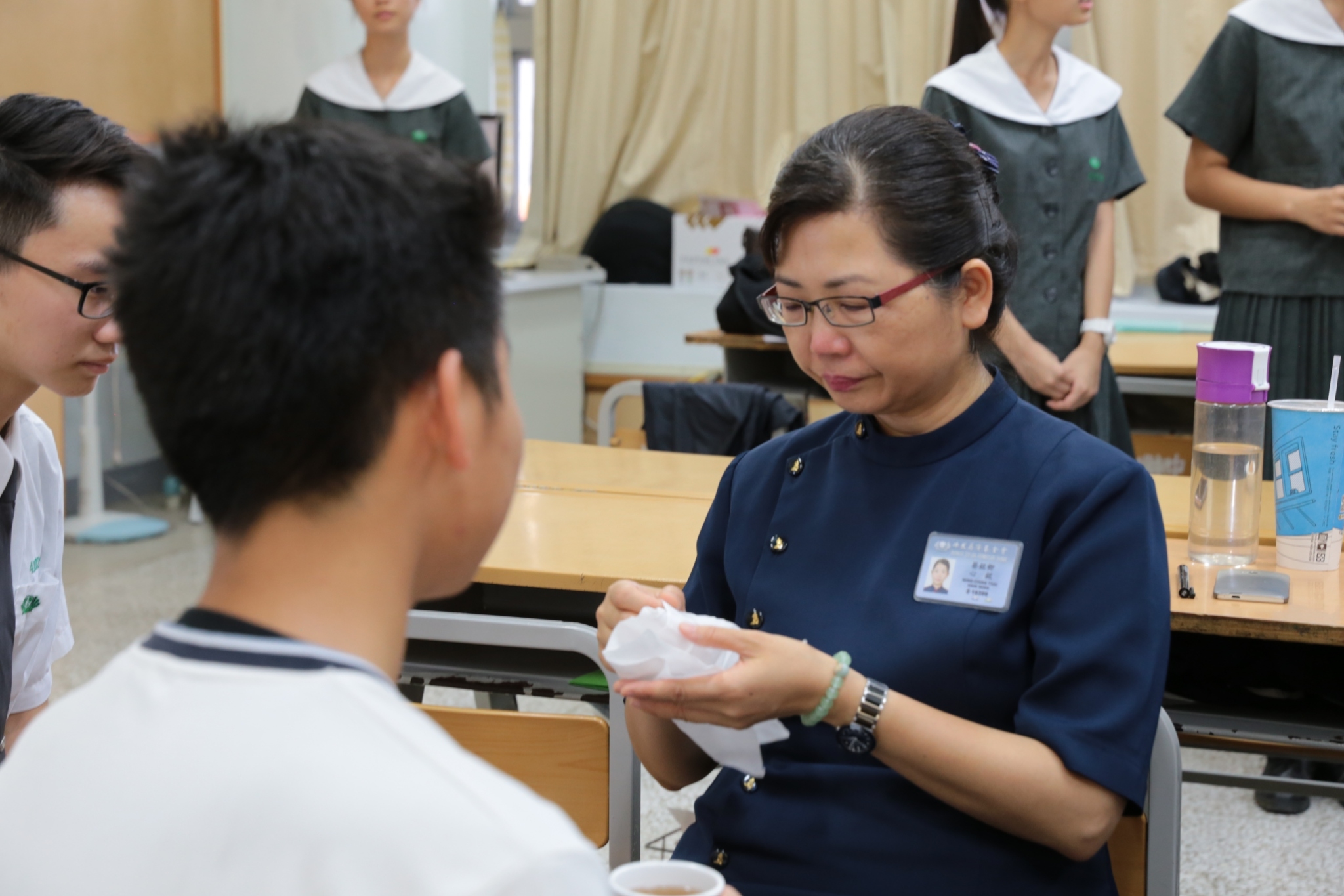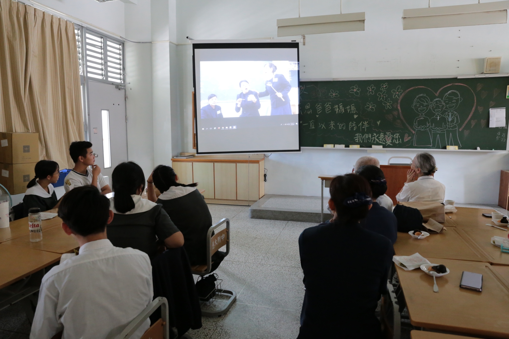 當門打開,孩子們打著節拍、唱著歡迎的歌迎接著我們,不禁紅了眼眶,流下了感動的淚珠。還記得高一相見歡時,生澀的、純真的你們,還帶著羞怯、清純的神情言語;如今,各個充滿自信與智慧,成熟的言行,讓我們感到欣慰。