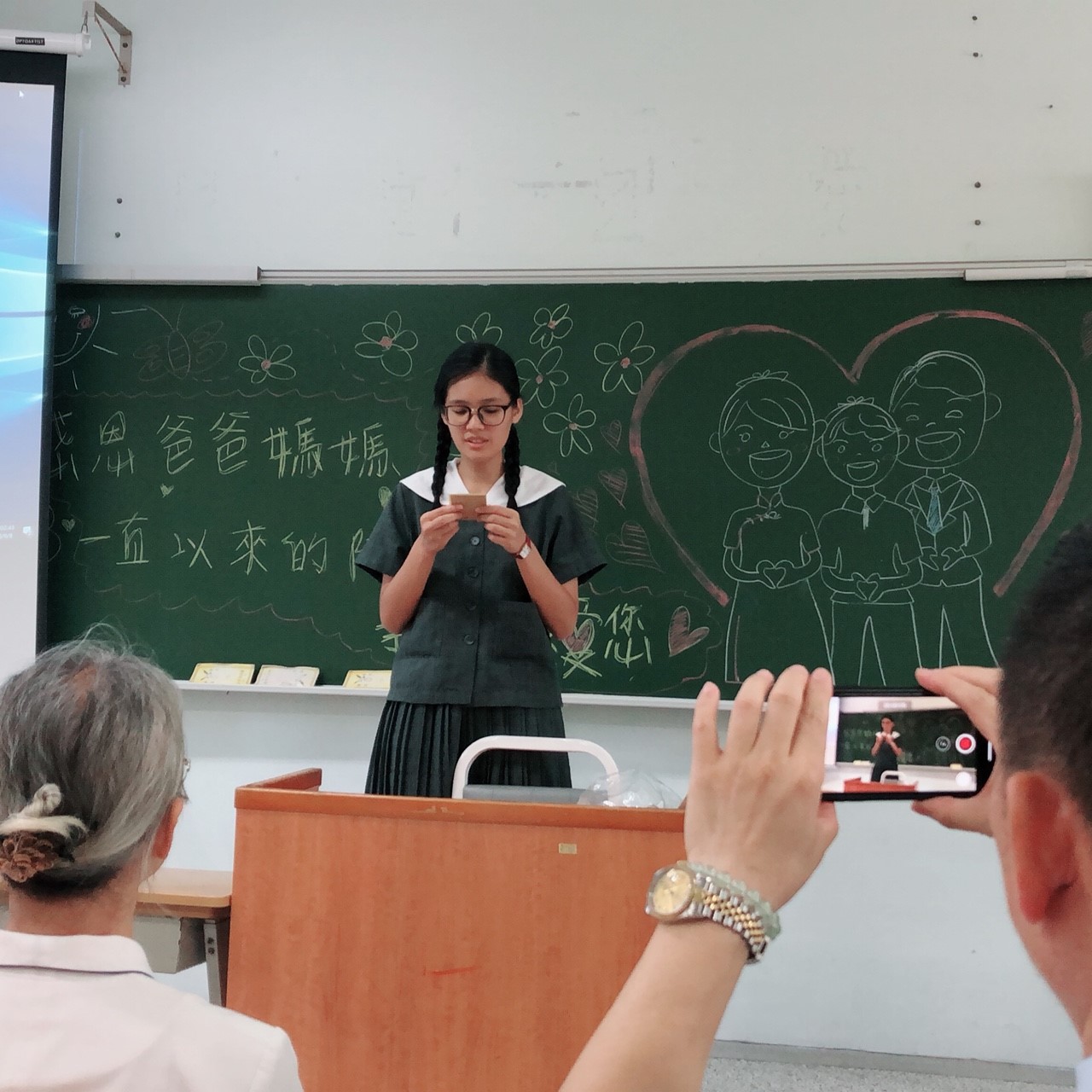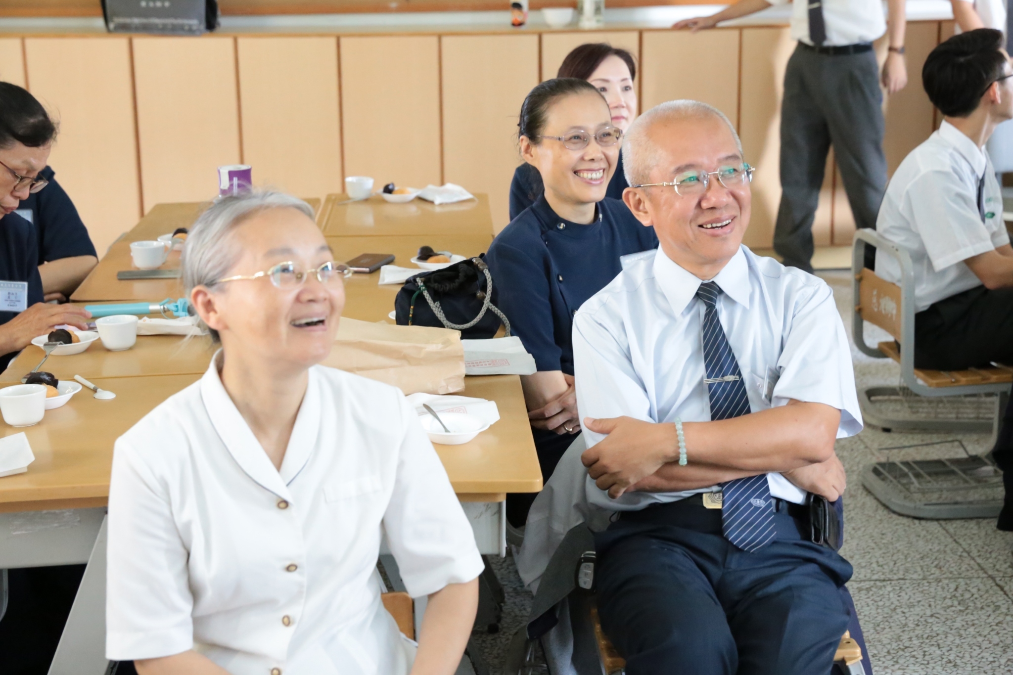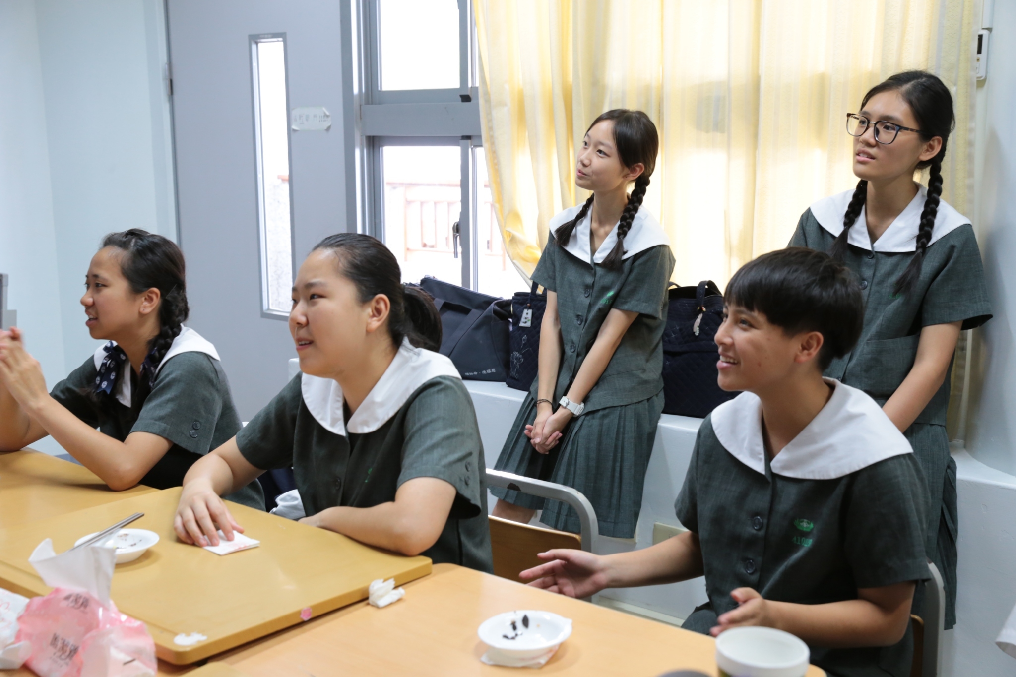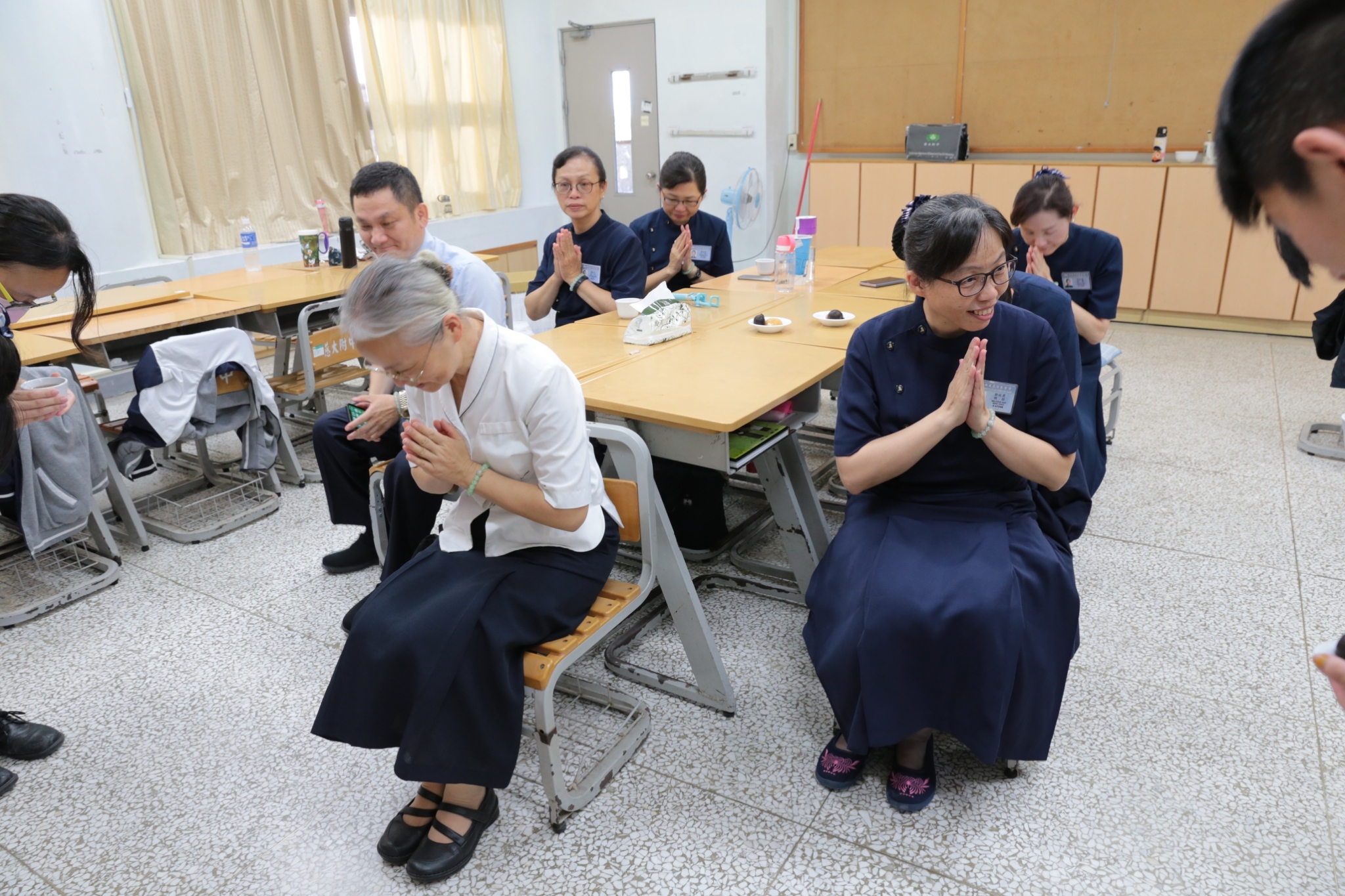 當門打開,孩子們打著節拍、唱著歡迎的歌迎接著我們,不禁紅了眼眶,流下了感動的淚珠。還記得高一相見歡時,生澀的、純真的你們,還帶著羞怯、清純的神情言語;如今,各個充滿自信與智慧,成熟的言行,讓我們感到欣慰。