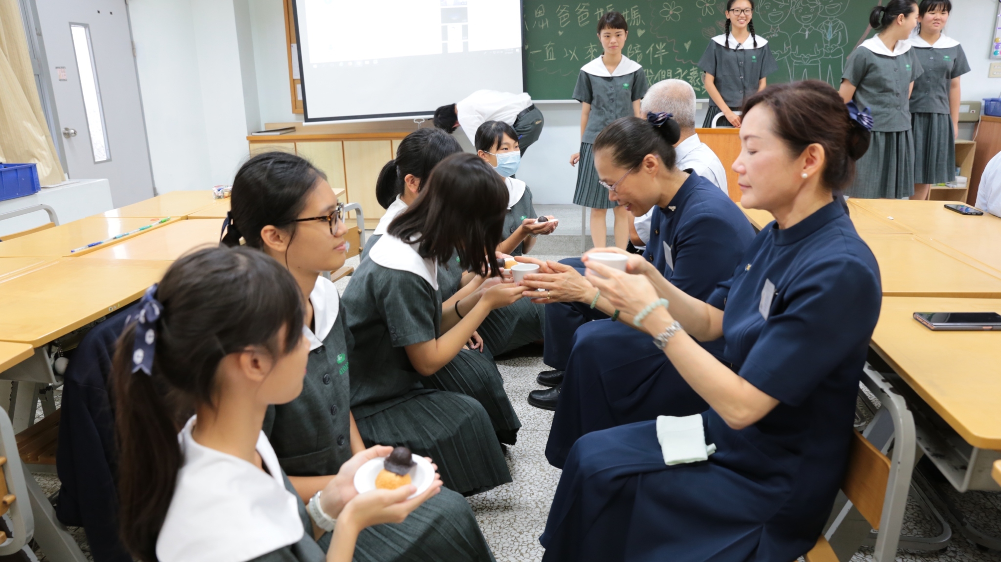在這最後一次的聚會,孩子們策劃感恩活動。為慈懿爸媽奉上感恩茶和茶點,並獻上全班特製的手工小書,讓我們好感動。尤其是孩子們自己譜曲寫詞的畢業歌,為這份法親之情,畫上完美的句號,幸福、溫馨充滿在每個人的心田。