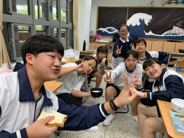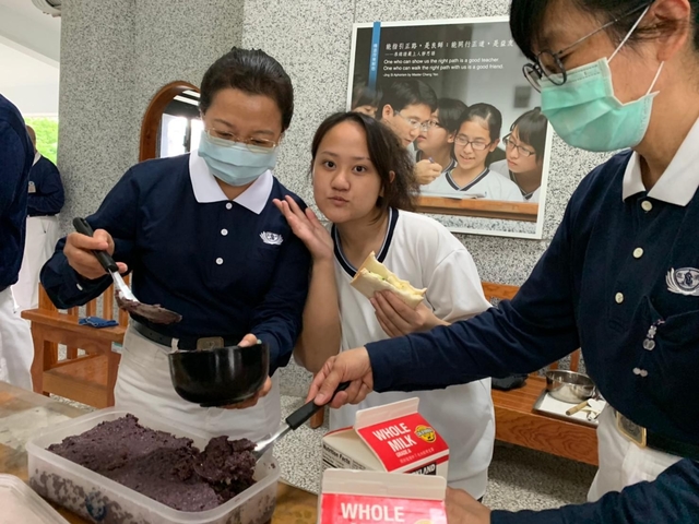 中午用餐時間,慈懿爸媽們與老師開心討論並期待著隔天的精舍路跑,餐後更開心的一同留影,下午的班級經營,由貴雲媽引導孩子了解惜福愛物,無痕蔬食的重要性,由秋芬媽、貴華媽準備營養吐司與蔬果,讓孩子DIY蔬食餐點,臨時請假的淑吟媽也特地熬製紅豆泥讓孩子享用,歡樂的享用後,回淼連兩次主動上台分享蔬食的好處,以柔分享雖然還沒吃全素,但是願意漸進式增加蔬食的餐數,已經茹素的德偉也上台跟大家勸素。最後由秋芬媽引導大家靜心及省思,貴雲媽引導孩子共同祈禱,並準備竹筒募心募愛,讓孩子將喝飲料的錢省下來付出給更需要的人,祈願敬天愛地的種子能深植孩子心中,轉識為智共同聚福緣。