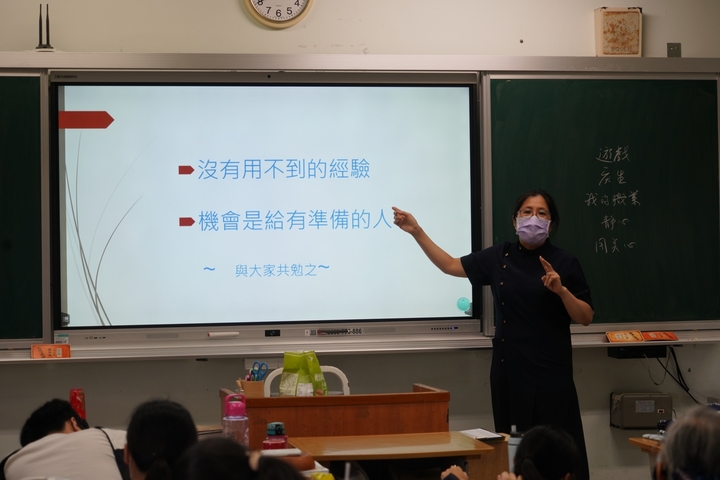 「不是看見希望才努力,而是努力才看見希望。」文鳳媽媽在課程最後鼓勵高三感恩班同學們,立定自己未來的目標後,要堅持信心,信心、毅力、勇氣三者具備,沒有做不成的事。