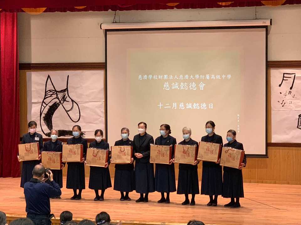 上午在大堂課後,為承擔慈誠懿德十年及二十年的爸爸媽媽,頒發榮譽獎,高三感恩班的劉銘珠媽媽榮獲十年獎榮耀,身為花蓮在地的銘珠媽媽,十年來盡心盡力做好在地的補位工作,竭盡所能地陪伴孩子,感恩她大愛無私地奉獻。