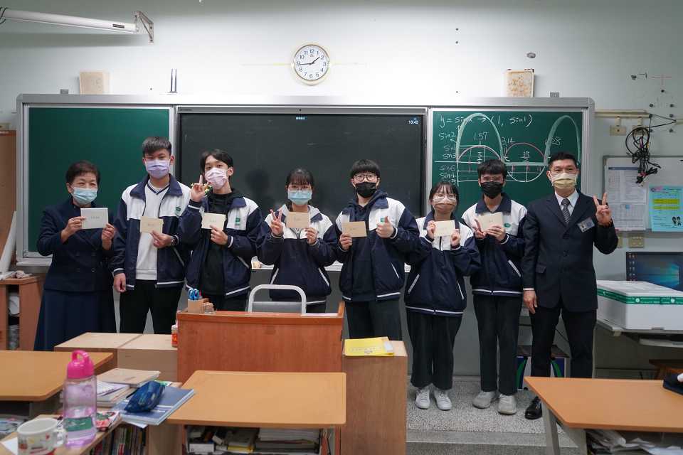 連羿竑同學雖然特殊選才面試的第一間學校失利,但他不氣餒,以幽默的口吻告訴同學,面對下周第二間學校的面試,他仍有信心,如果特殊選才都沒考上,他也會努力準備好學測,繼續為他希望考上的學校科系而努力。聽到他的一番話,全班都為他拍手鼓勵喝采。