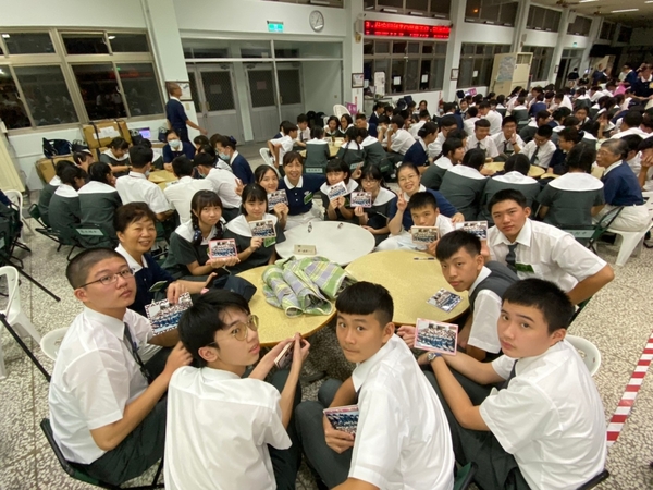圖四:迎新晚會上,高一感恩班同學手邊拿著懿德爸媽所準備的卡片,開心地合影留念。