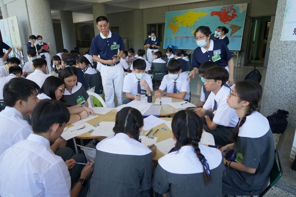 圖一:在慈誠懿德爸媽的引導下,高一感恩班同學完成〝好想認識你-五指圖〞任務。