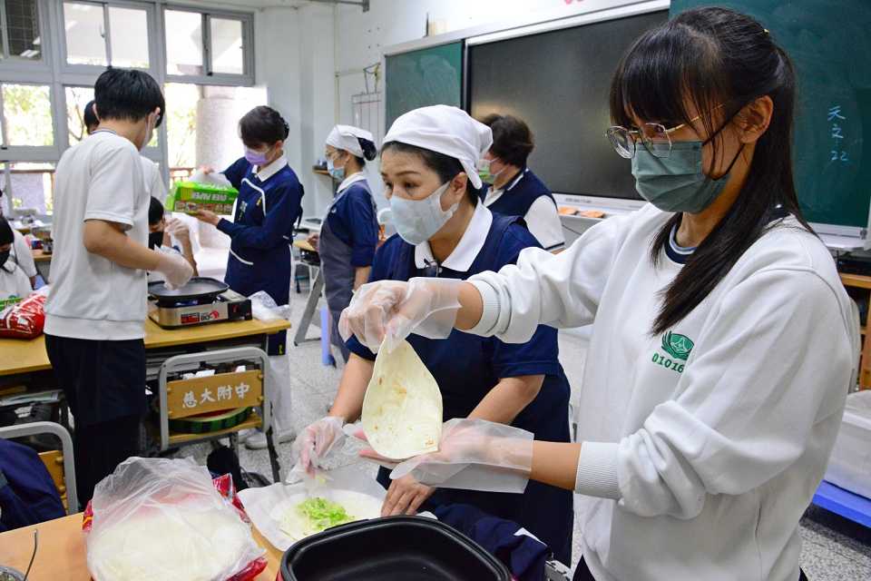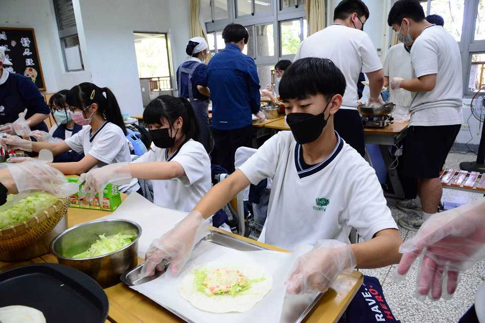 義賣後回到教室慶生之後,和本月份的壽星聖宏、家銨、家瑜享用自己製作的捲餅結束了充實圓滿的一天。