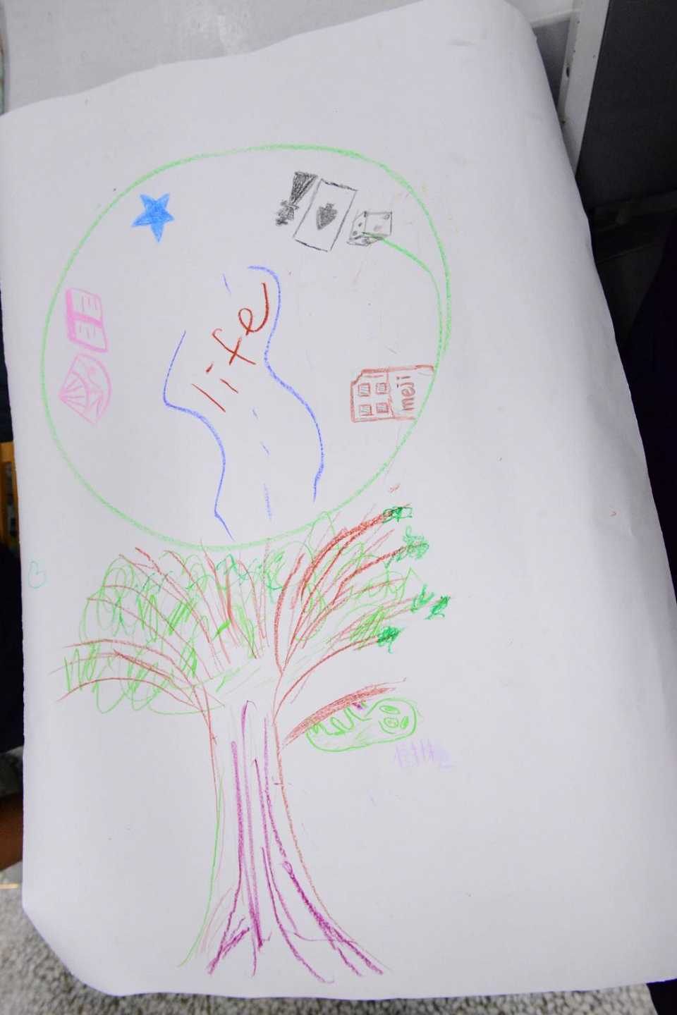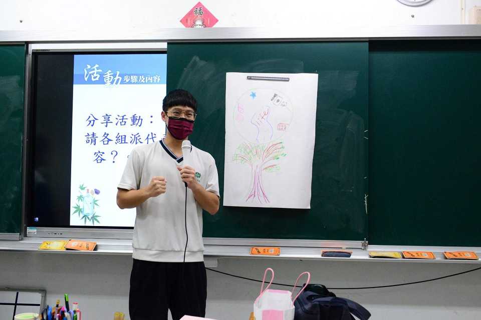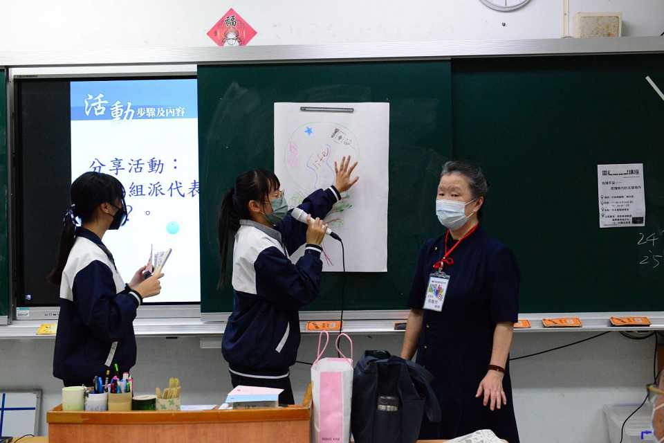 活動按家族分組,每一家族領回一張畫有圓形、三角形及四方形的圖紙,依照圖形把每個人的規劃畫在圖紙上,並上台分享他們畫的內容涵意:
