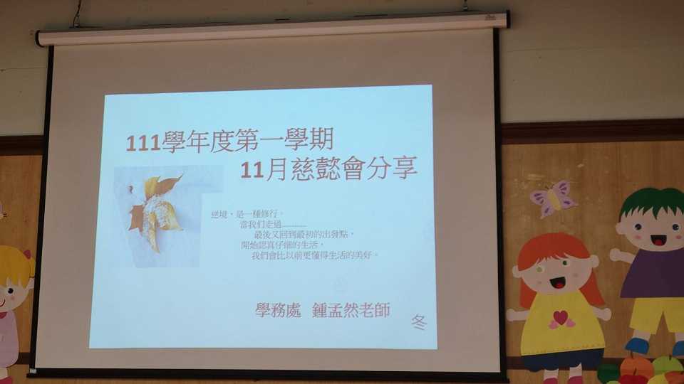 話我慈中由學務處鍾孟然主任分享如何讓國一住宿學生融入慈中生活,早餐有禮、晨讀時光、淨地淨心、教學課間、午餐感恩、夜間溫習、人間菩提,讓學生每個時段要如何去學習。