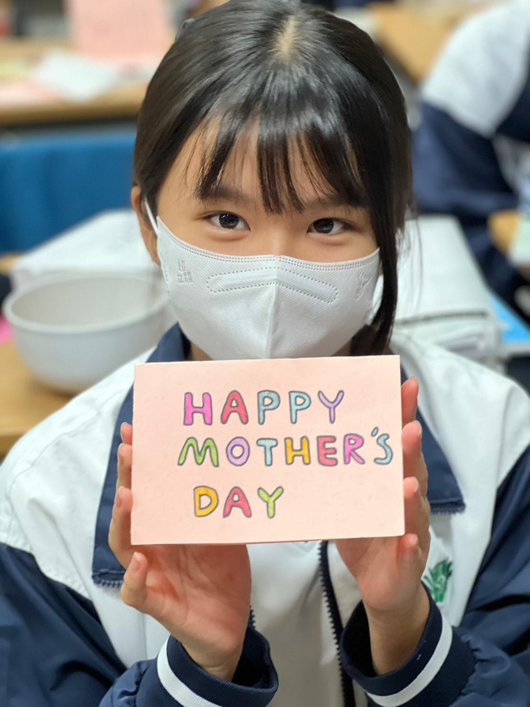 下午進班由賴雪如媽媽主持先給五月份班上孩子慶生;在請班上孩子在線打電話給媽媽感恩媽媽和媽媽說心裡話並且祝褔媽媽母親節快樂,也請班上孩子們給媽媽製作母親節卡片班上孩子們用自己的創意和心意給自己的媽媽製作卡片也寫上對媽媽想說的心裡話和祝褔;也分享慈誠懿德提供的視頻給孩子們看,也分享李斯華媽媽準備的杏鮑菇貝果、感恩梅汶媽媽結緣的西米露、黃小川媽媽的飲品、盧玟樺媽媽的海苔米果;感恩班的孩子也準備了給班上的爸爸媽媽康乃馨花和禮物祝褔我們爸爸媽媽母親節快樂,也感恩孩子們的祝褔也祝褔孩子們的媽媽母親節快樂。
