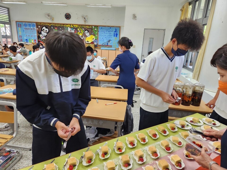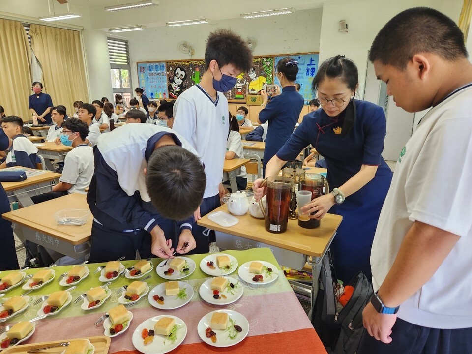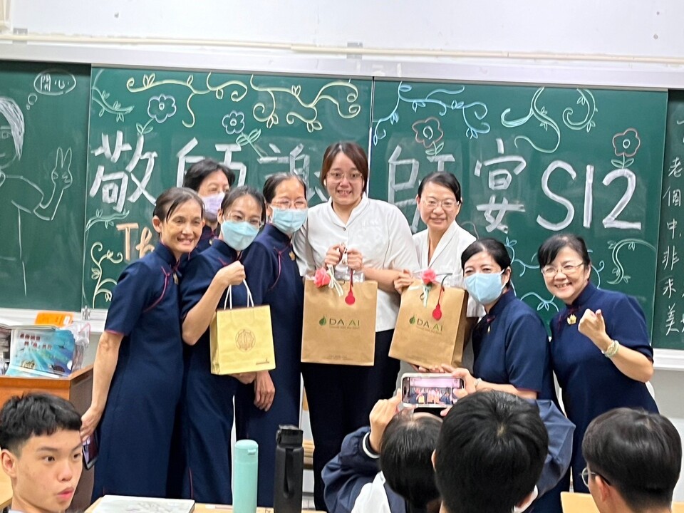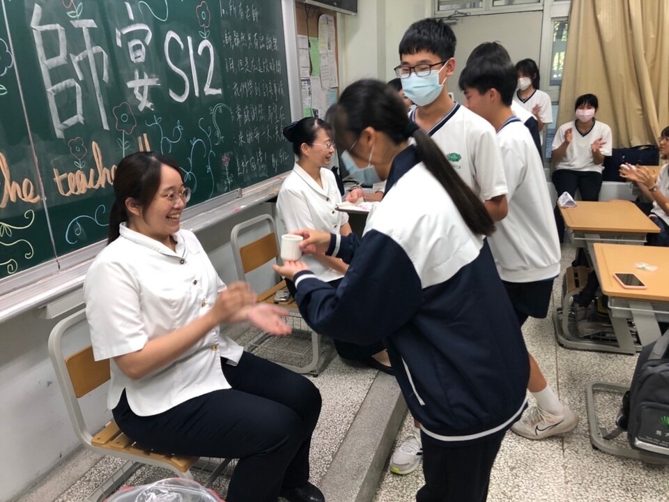 自從9/1與班上老師和孩子們相見歡後,懿德爸媽們藉由線上討論共識我們這一班的老師是第一次參與慈濟的敬師活動,而班上孩子們都非常的活潑主動,所以大家共識這次的敬師活動要用又環保又有人文特色的靜思奉茶為主,懿德媽媽並引導孩子們討論,他們想要如何展現感恩老師的敬師活動,同學們討論完後,馬上分工派代表在黑板上畫畫,寫上他們與老師雖然相識短短幾個月但對老師已有很深的情感,並主動加入幫一懿德媽媽們準備茶食、泡茶水。ㄧ切準備就緒時同學們去邀請班導和歷史老師來到班級時,班導師美霞老師睜著大大的眼神充滿驚喜的表情就座後,班長代表4人在聽我說謝謝妳的歌聲中,緩步上前恭敬奉上一杯感恩的敬師茶水,有幾位同學主動說要跟老師說感恩的話,看著班導師美霞老師感動落淚不停用手擦淚的動作,讓孩子們不捨地一直遞衛生紙給老師,並安慰老師不要哭。