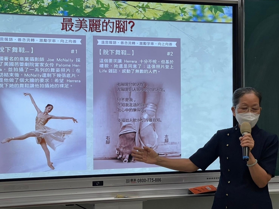下午入班進行活動,由枝容媽、懿真媽、文章爸泡茶,準備點心。蘭惠媽分享禮儀之美,請同學們分享台灣最美的風景區、自己的偶像,請大家觀賞美麗的鹿角話劇,驕傲的鹿心生感嘆!最後害死自己的是最得意的鹿角;而能夠救命的是那不起眼的四隻腳,可惜已經來不及了。請同學們拿出鏡子,看看自己臉部;最喜歡及最不喜歡部位。讓同學們了解,我們身上每個部位都很重要,不可缺少的。再讓孩子們看一段影片,芭蕾舞「天鵝湖」,舞者婀娜多姿的優美舞姿,但脫下美麗的舞鞋,看到舞者的裸足,真的深感不捨,我們不是舞者怎能知道,他們的樂與苦呢?幸福如人飲水,冷暖自知。