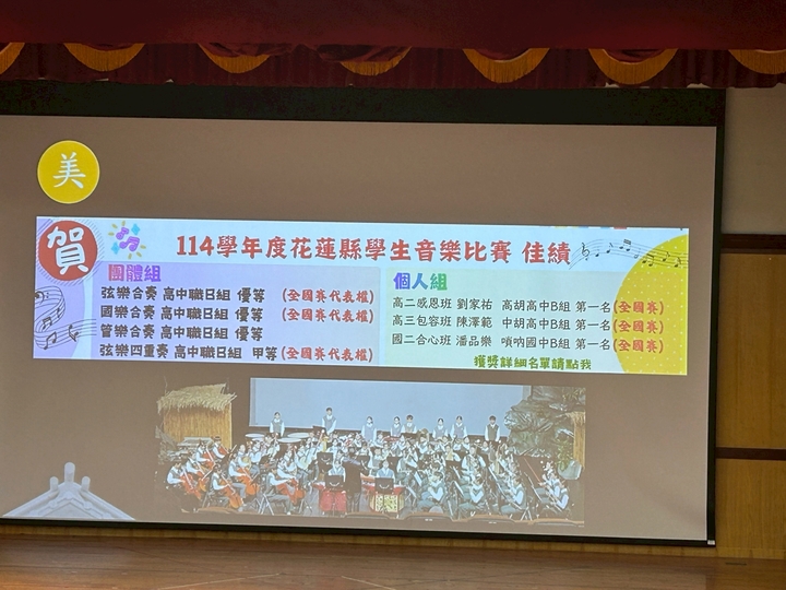 廖逸貞校長細數學校這段時間所締造的佳績,洋洋灑灑,讓大家看見慈中師生的努力與優質。期待來年的招生順利,招來更多與慈濟有緣的孩子和家庭。尤其看到班上劉家佑同學榮獲花蓮縣高胡高中第一名,爸媽們都與有榮焉。