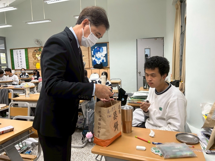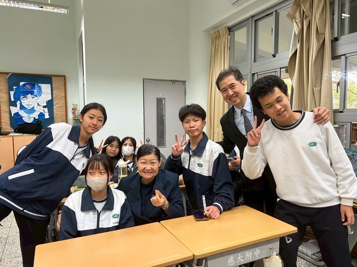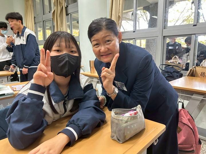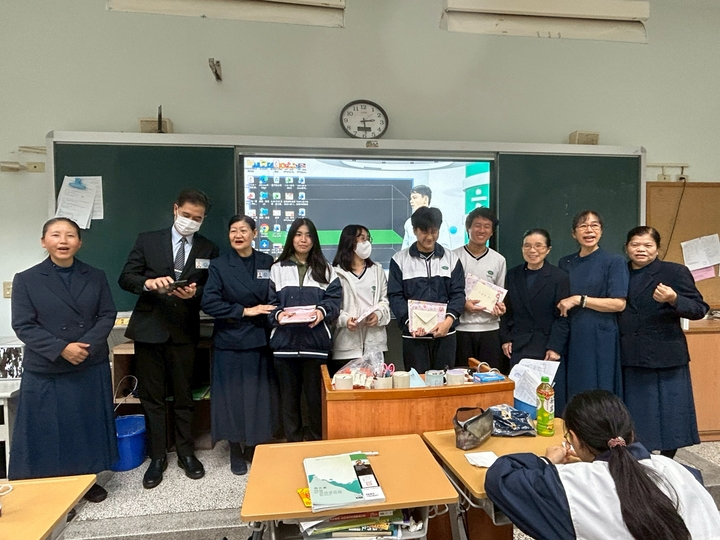這個月有六位孩子生日,歡喜慶生的時候剛好廖校長、若岑媽帶著國際學校慈懿會幹部來到班上。國際學校慈懿會合心幹事張瑞詩剛好是孫建銘爸爸的同修,她也給孩子們勉勵。班長嘉恩和亘容同學曾跟著學校到馬來西亞交流,巧遇當時認識的爸爸,歡喜合影。