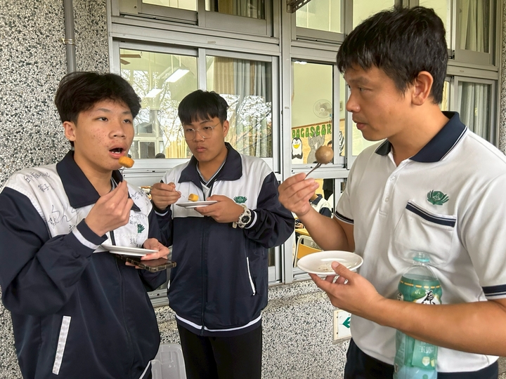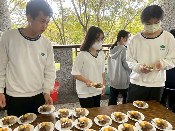 感恩二位爸媽帶了椰糖和斑斕葉糖給孩子吃,孩子馬上吃起來,直說好吃。銀杏媽的滷豆干、滷蛋和憲嬌媽的鳳梨酥更加滿足了孩子們的胃。