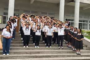 美智媽(右三)帶領老師及同學們表演手語,獲得滿堂彩。