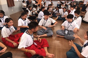 合心總幹事若岑媽陪同藍毗尼國際學校老師們步入會場,受到全校師生熱烈歡迎。